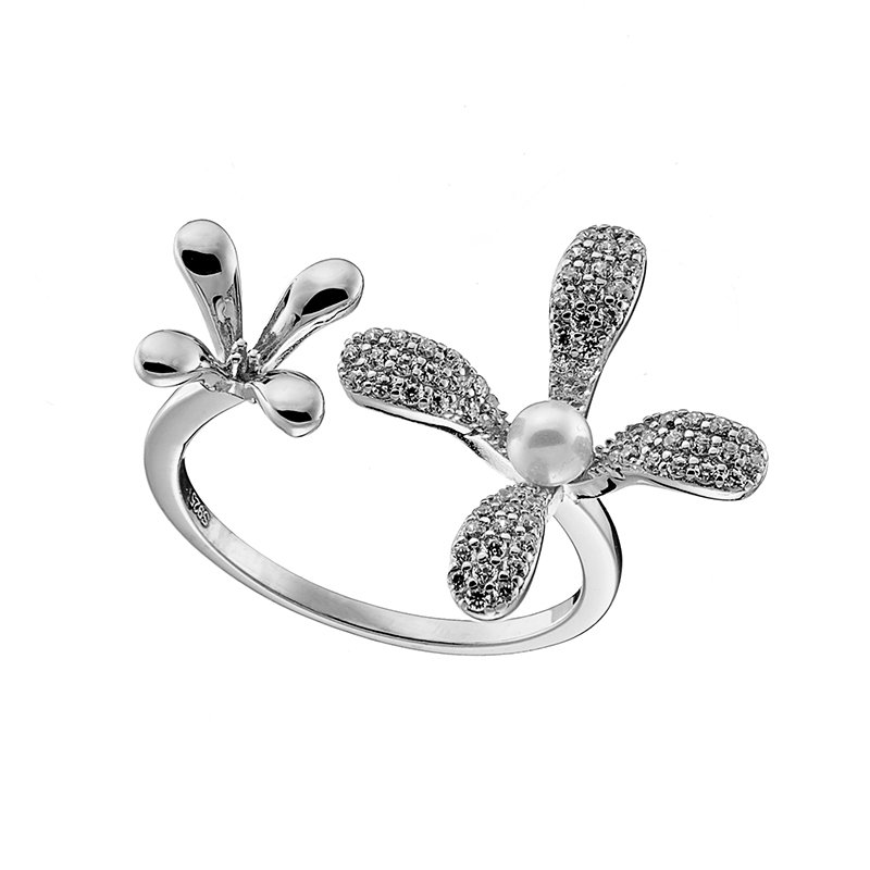 Oxzen δαχτυλίδι ασημένιο με ζιργκόν λουλούδι και πέρλα free size