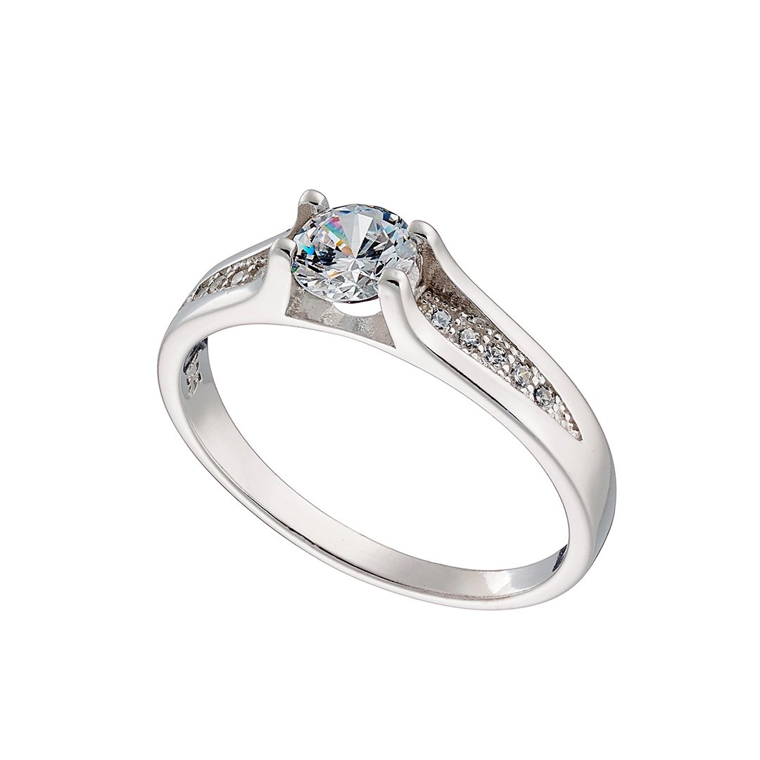 Oxzen δαχτυλίδι ασημένιο μονόπετρο με λευκά ζιργκόν