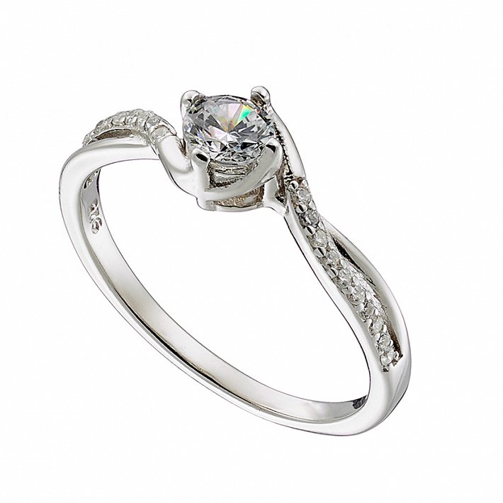 Oxzen δαχτυλίδι ασημένιο μονόπετρο με λευκά ζιργκόν
