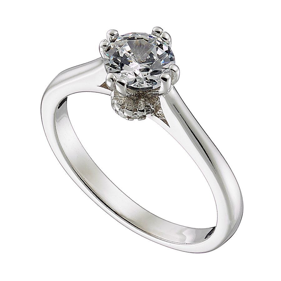 Oxzen δαχτυλίδι ασημένιο μονόπετρο με λευκό ζιργκόν