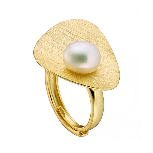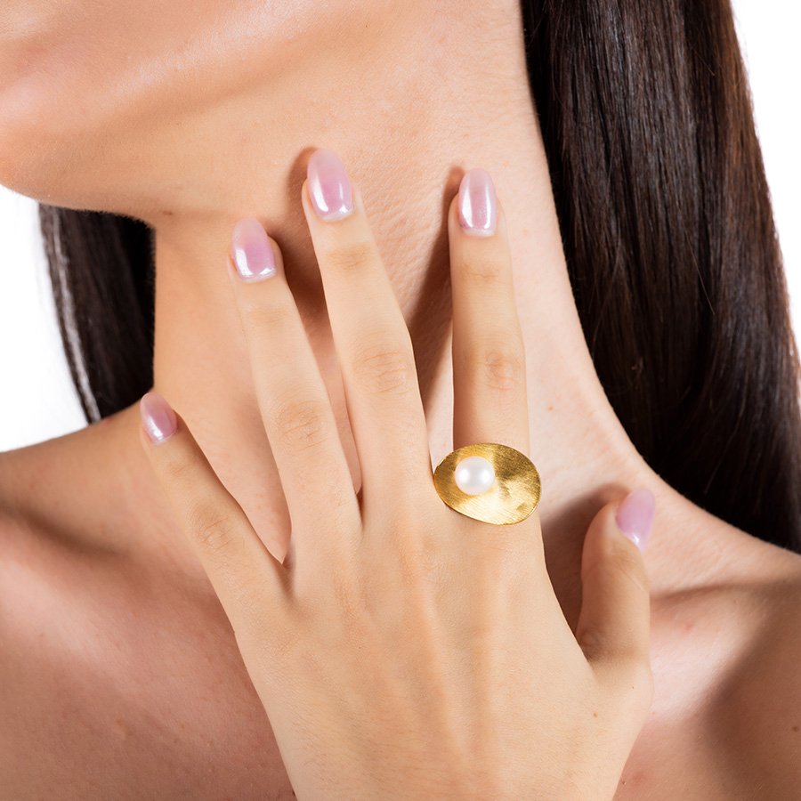 Oxzen δαχτυλίδι ασημένιο σε χρυσό χειροποίητο με ακατέργαστο μαργαριτάρι