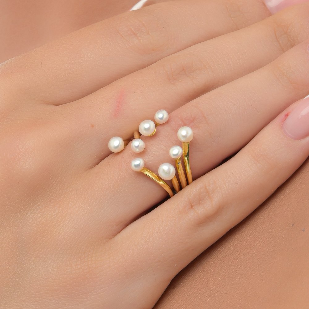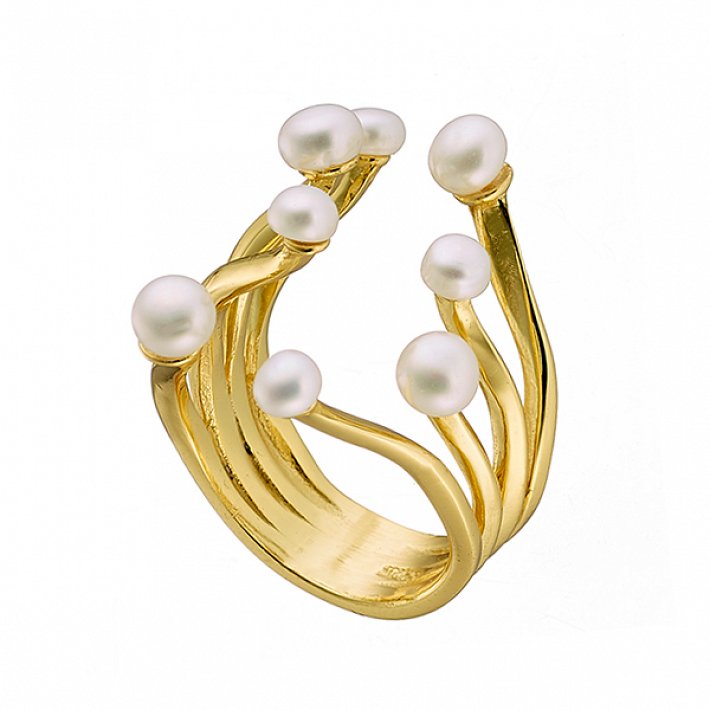 Oxzen δαχτυλίδι ασημένιο σε χρυσό χειροποίητο με ακατέργαστο μαργαριτάρι