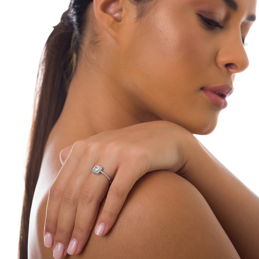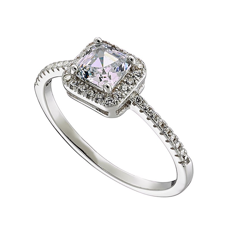 Oxzen δαχτυλίδι ασημένιο τετράγωνο μονόπετρο με λευκά ζιργκόν