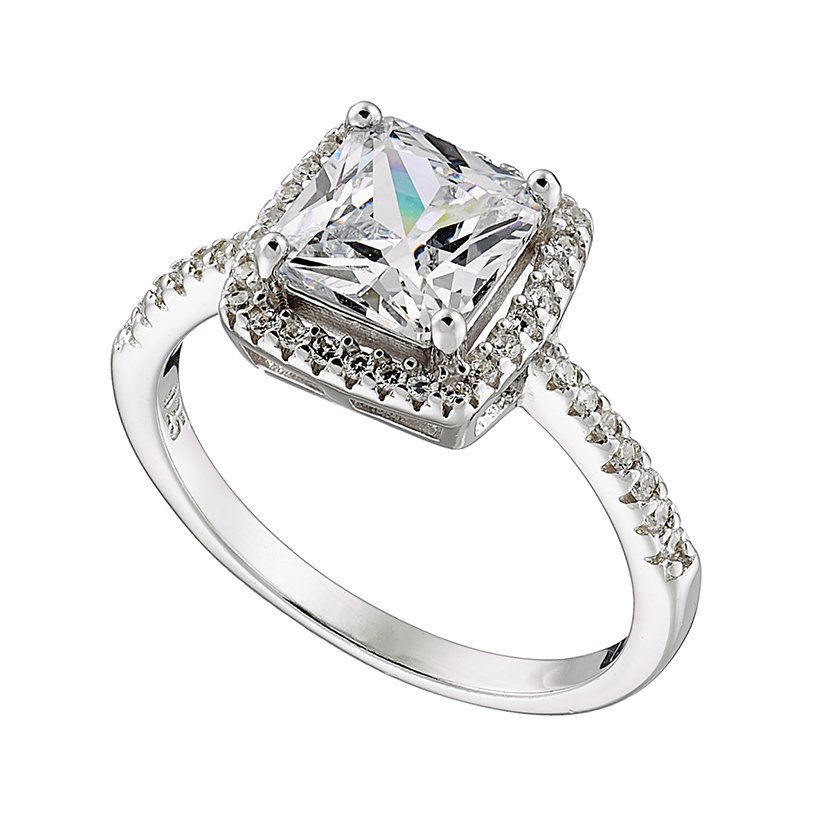 Oxzen δαχτυλίδι ασημένιο τετράγωνο μονόπετρο με λευκά ζιργκόν