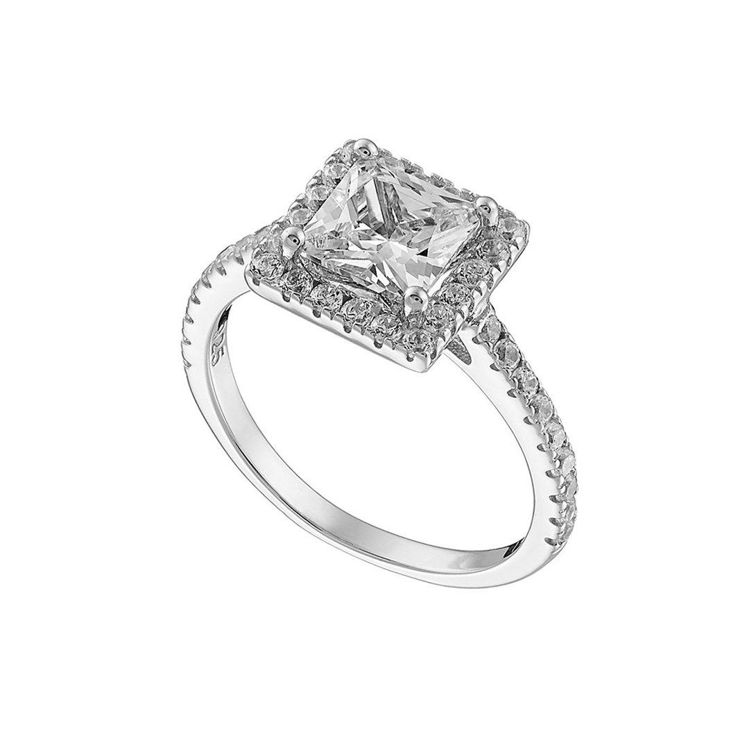 Oxzen δαχτυλίδι ασημένιο τετράγωνο μονόπετρο με λευκά ζιργκόν