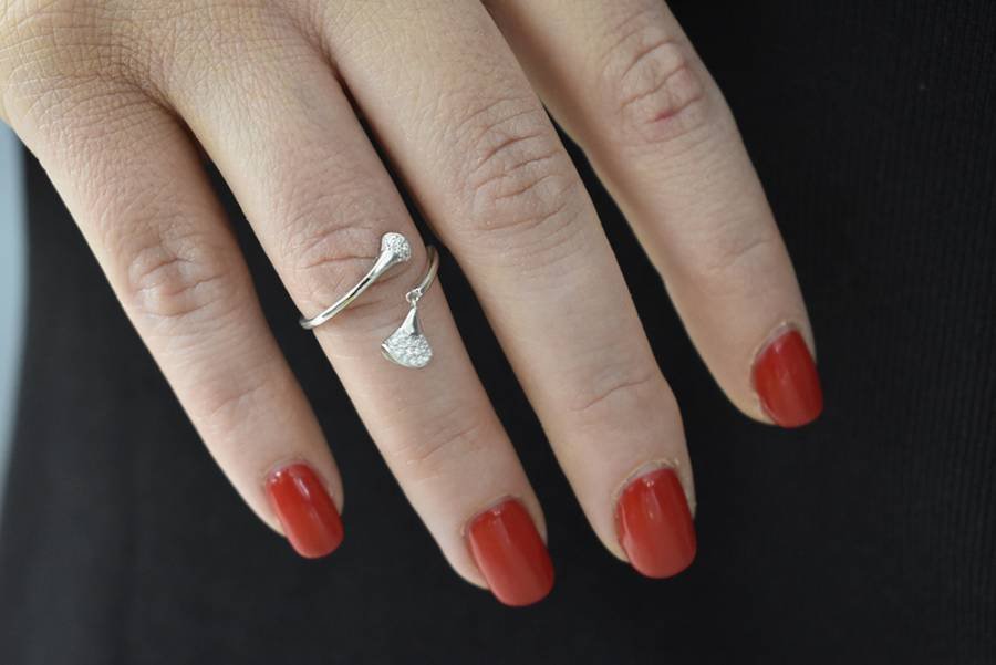 Oxzen δαχτυλίδι ασημένιο βεντάλια με ζιργκόν free size