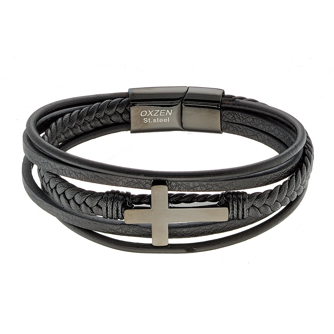 Βραχιόλι ατσάλινο με δέρμα μαύρο και κούμπωμα μαγνήτη