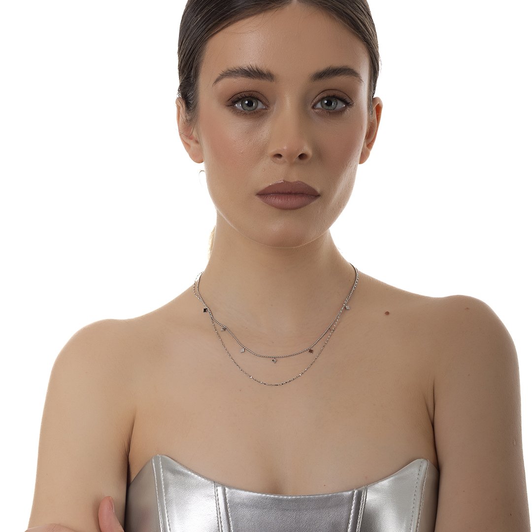 Oxzen γυναικείο ατσάλινο κολιέ διπλό