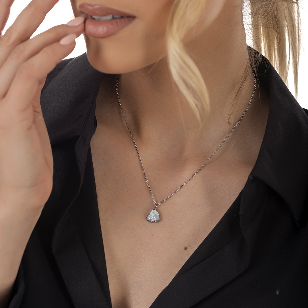 Oxzen γυναικείο ατσάλινο κολιέ καρδιά με οπάλιο