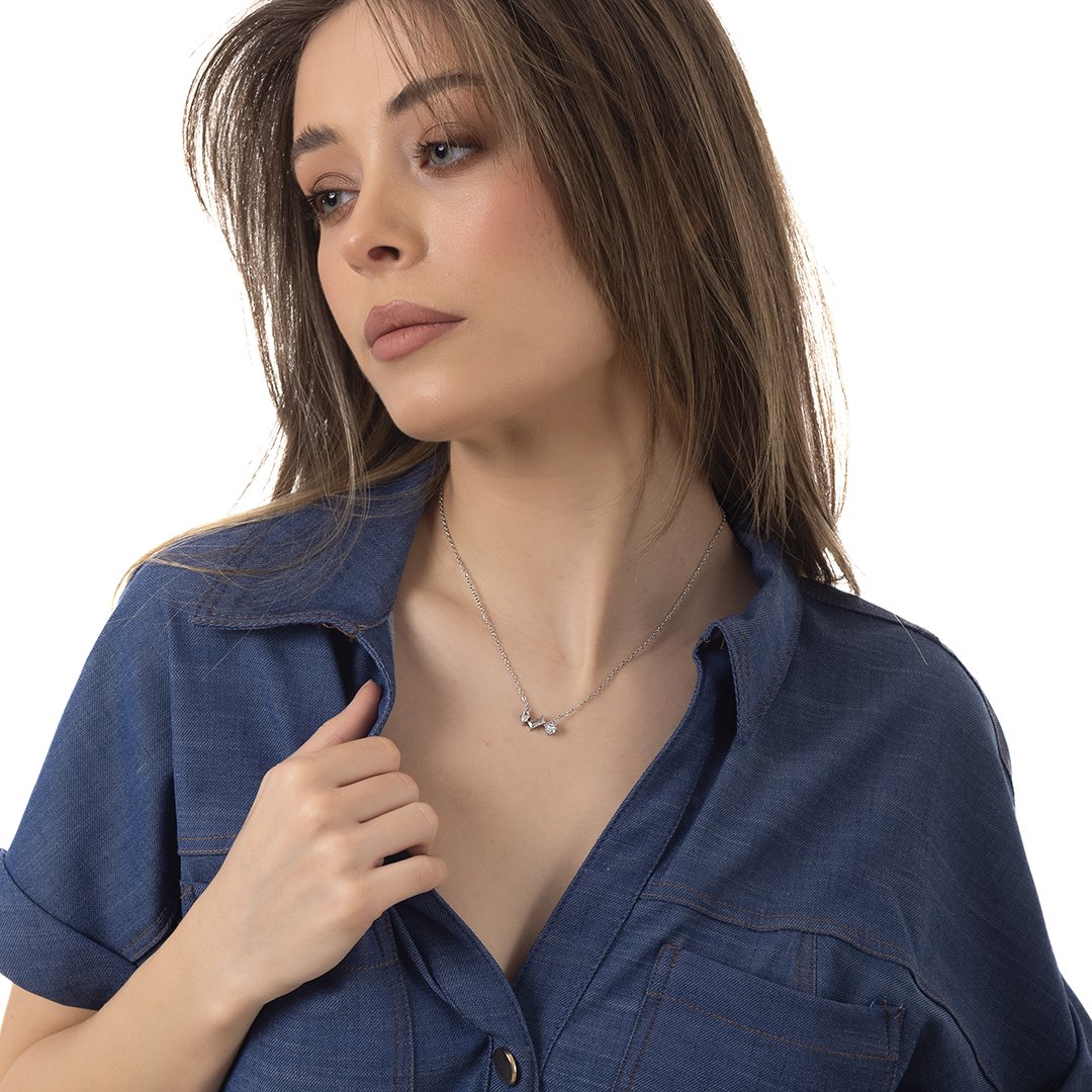 Oxzen γυναικείο ατσάλινο κολιέ με λευκά ζιργκόν
