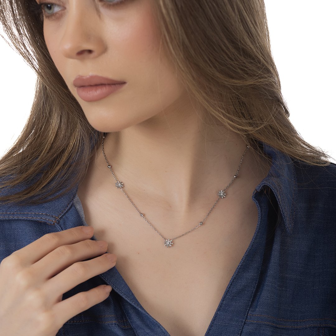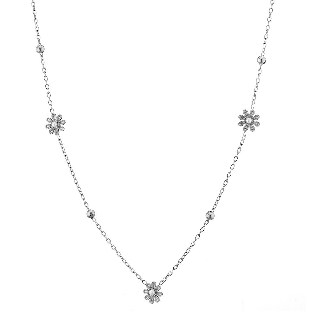Oxzen γυναικείο ατσάλινο κολιέ με μαργαρίτες