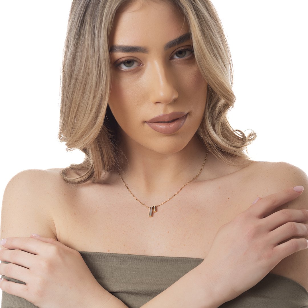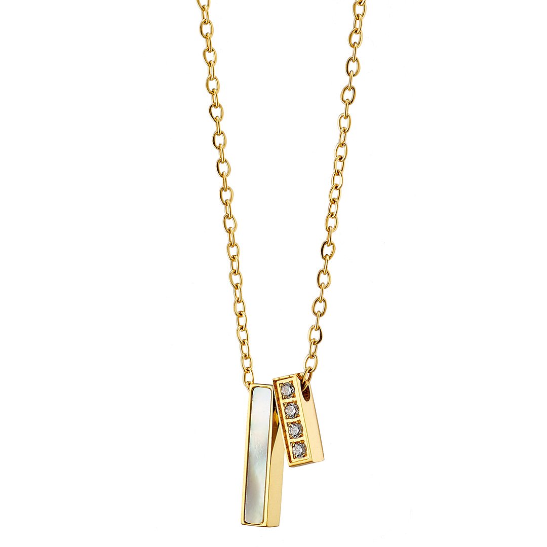 Oxzen γυναικείο ατσάλινο κολιέ με οπάλιο και λευκά ζιργκόν