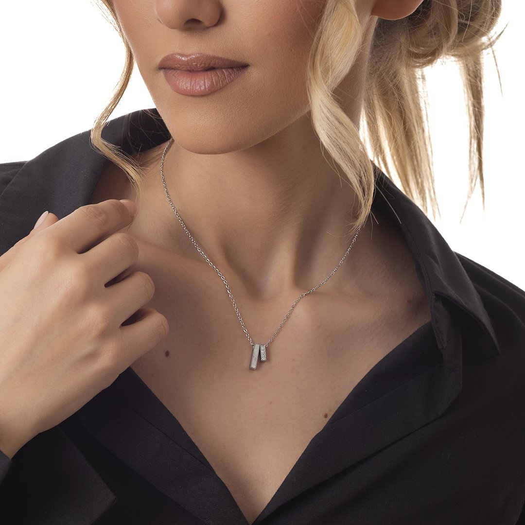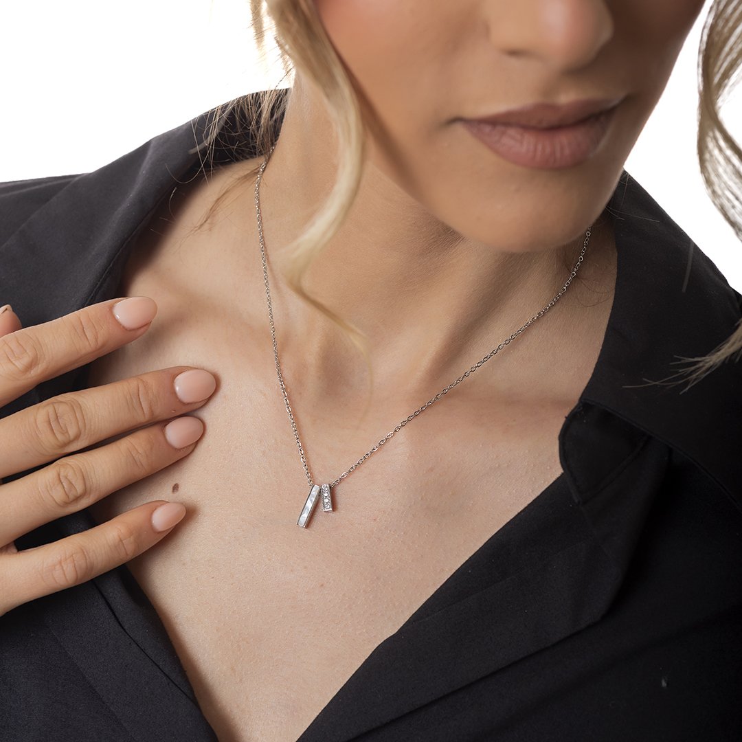 Oxzen γυναικείο ατσάλινο κολιέ με οπάλιο και λευκά ζιργκόν
