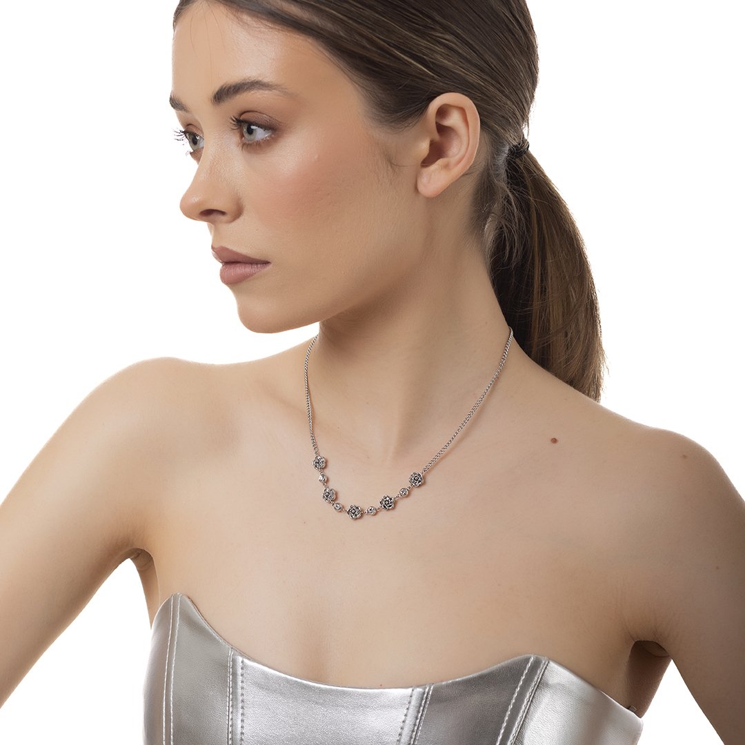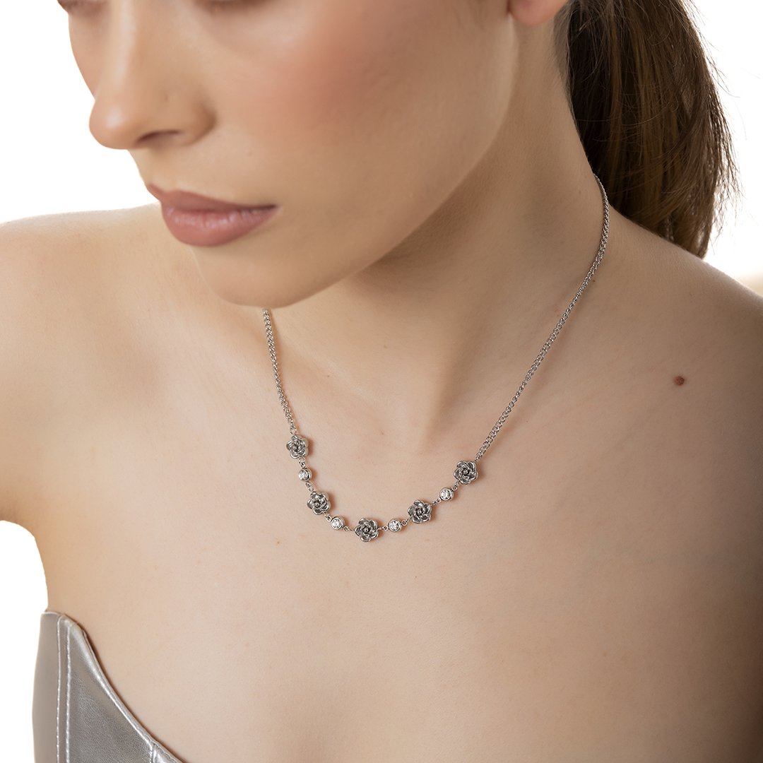 Oxzen γυναικείο ατσάλινο κολιέ τριαντάφυλλα