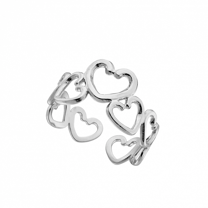 Oxzen γυναικείο δαχτυλίδι από ανοξείδωτο ατσάλι με καρδούλες free size