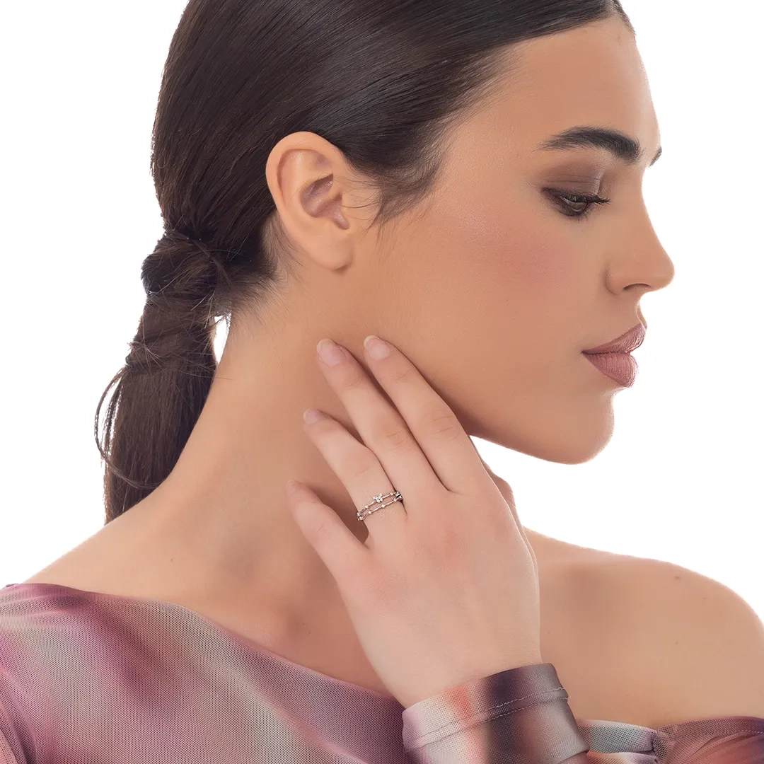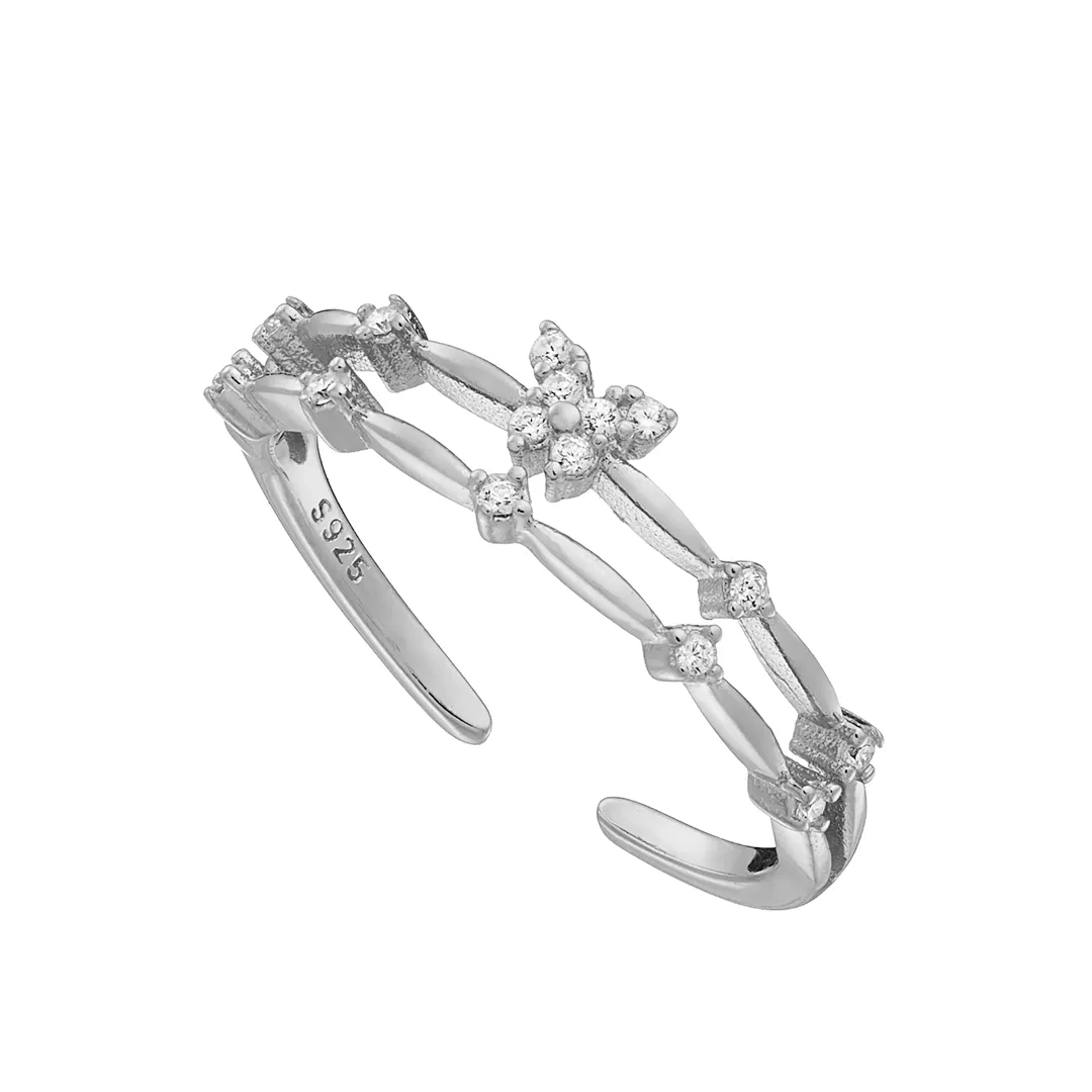 Oxzen γυναικείο δαχτυλίδι ασημένιο με λευκά ζιργκόν free size