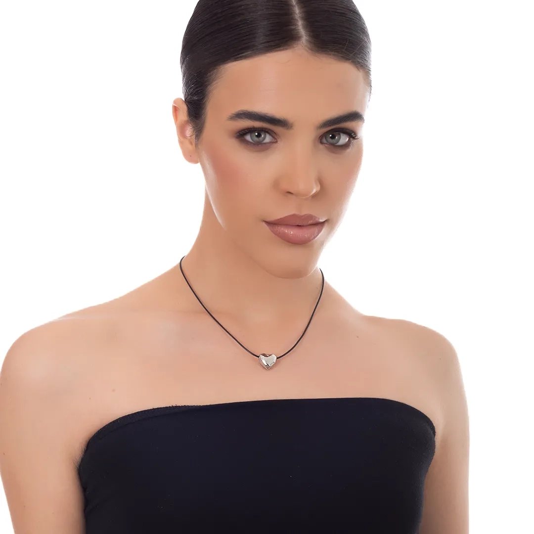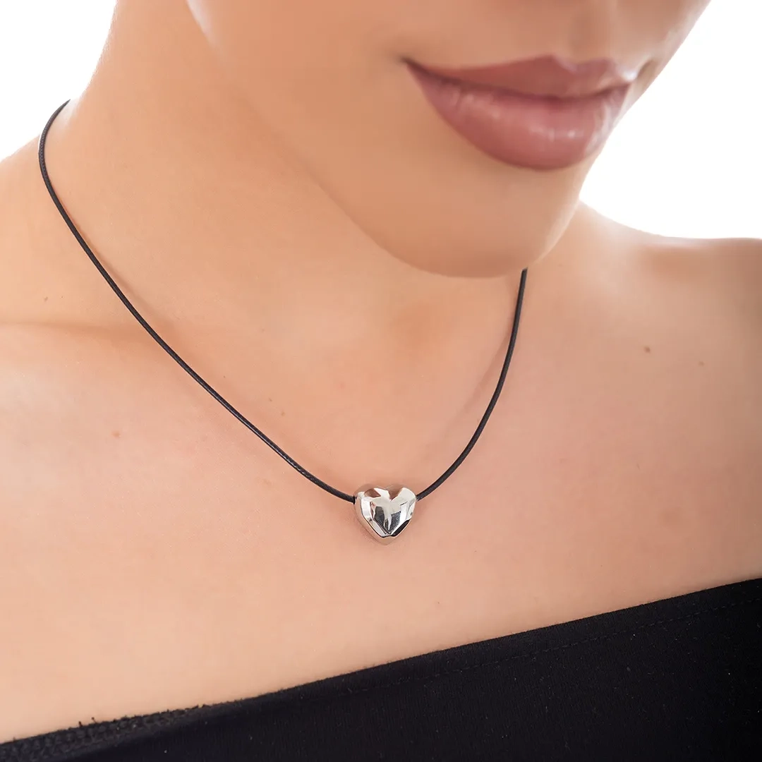 Oxzen γυναικείο κολιέ από ανοξείδωτο ατσάλι καρδιά με δερμάτινο λουράκι