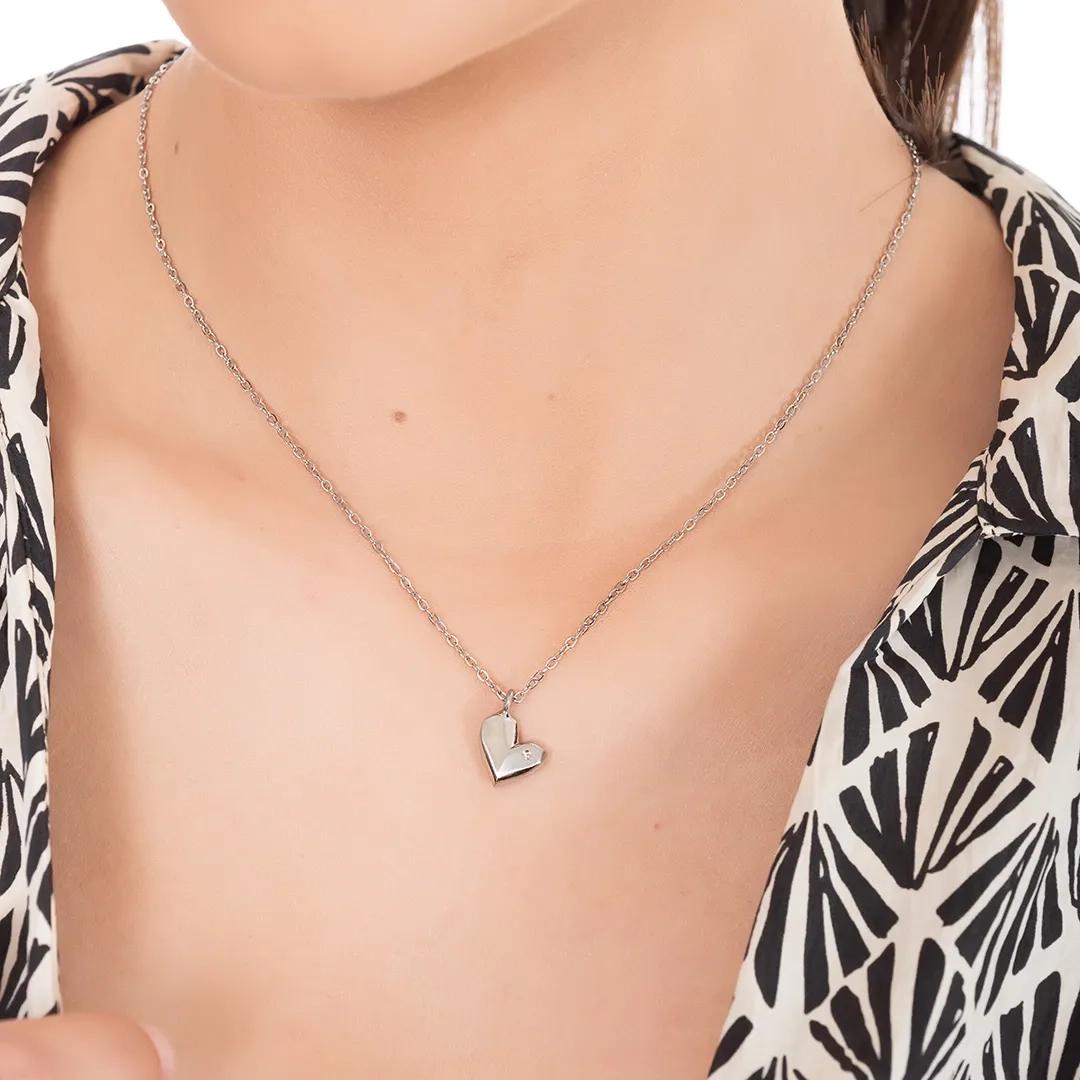 Oxzen γυναικείο κολιέ από ανοξείδωτο ατσάλι ματ καρδιά με ιδιαίτερο σχέδιο