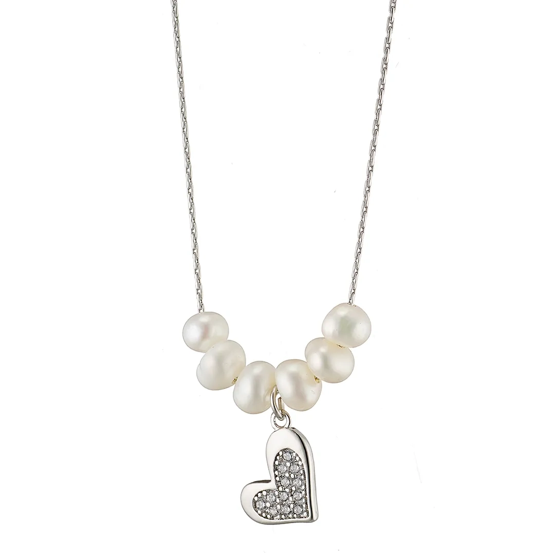 Oxzen γυναικείο κολιέ από ανοξείδωτο ατσάλι, με πέρλες και κρεμαστή καρδιά