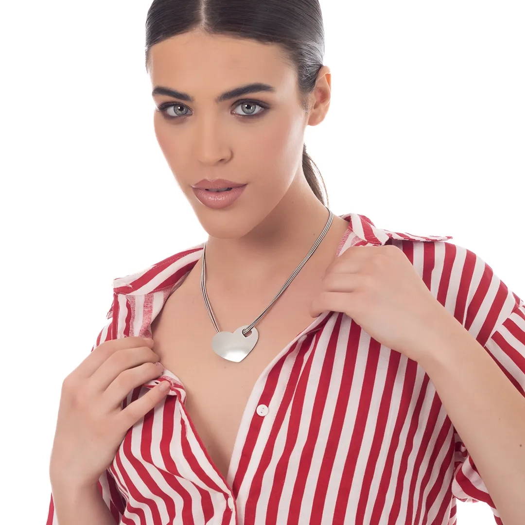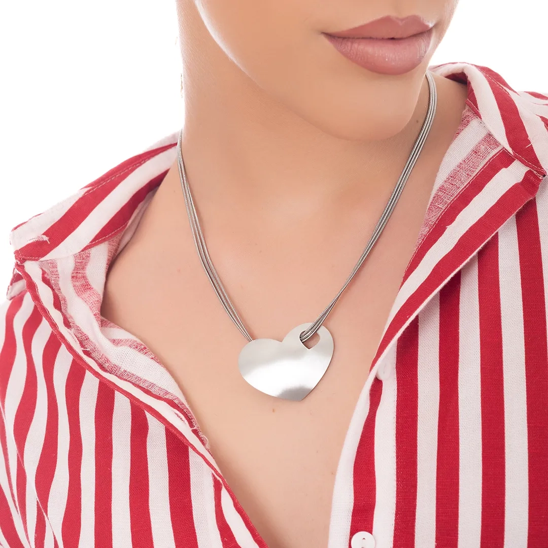 Oxzen γυναικείο κολιέ από ανοξείδωτο ατσάλι μεγάλη ματ καρδιά