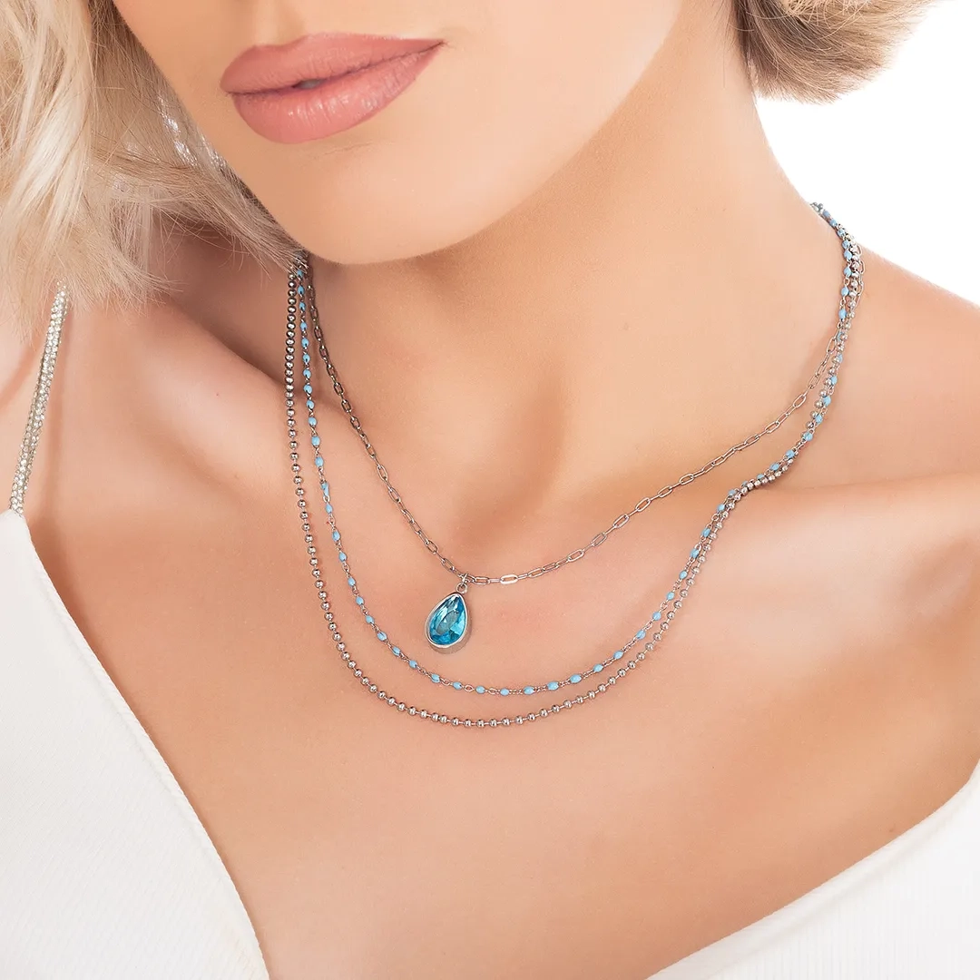 Κολιέ ατσάλινο με ματάκι φίλντισι