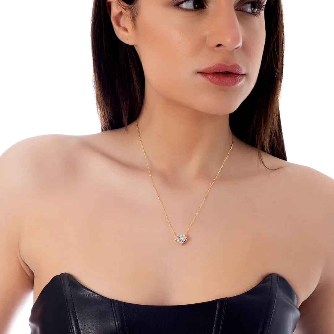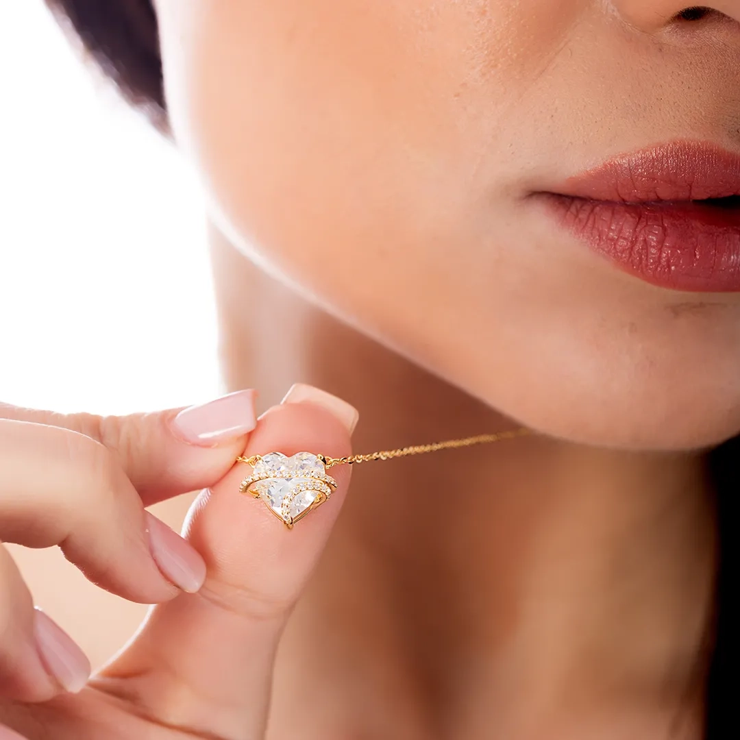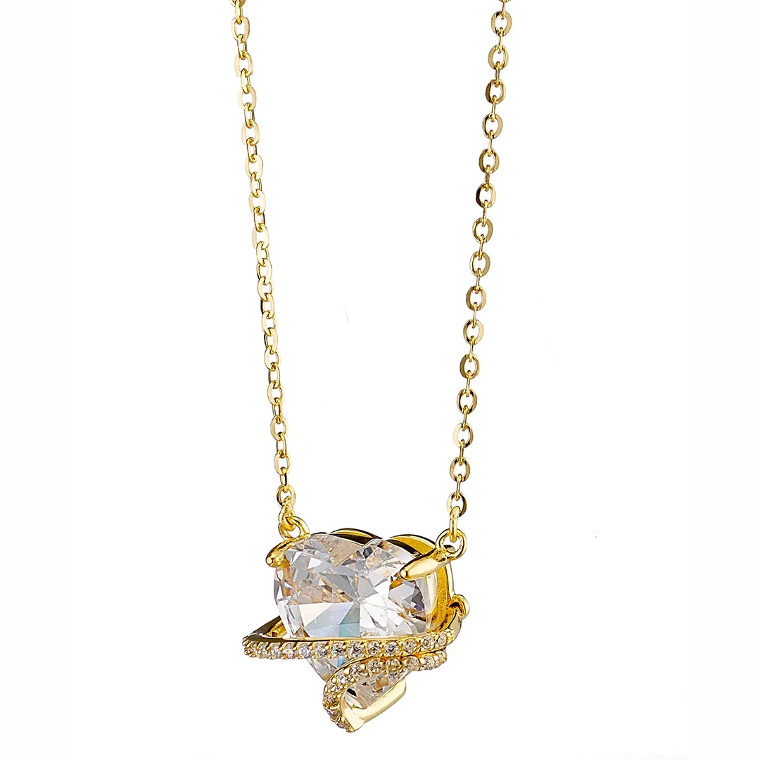 Oxzen γυναικείο κολιέ από ασήμι 925, επιπλατινωμένο με λευκή καρδιά ζιργκόν
