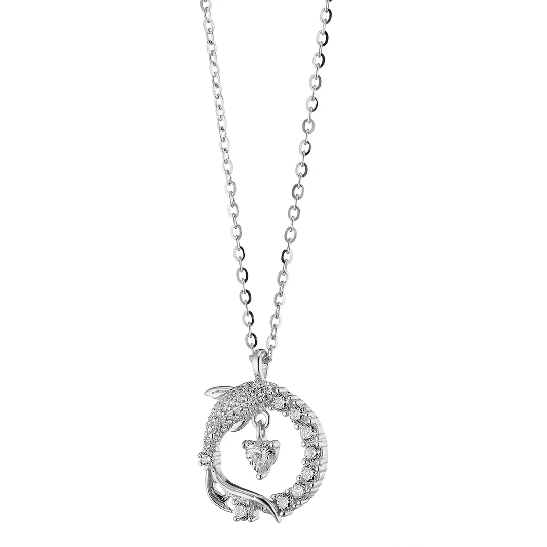 Oxzen γυναικείο κολιέ ασημένιο δελφινάκι με ζιργκόν