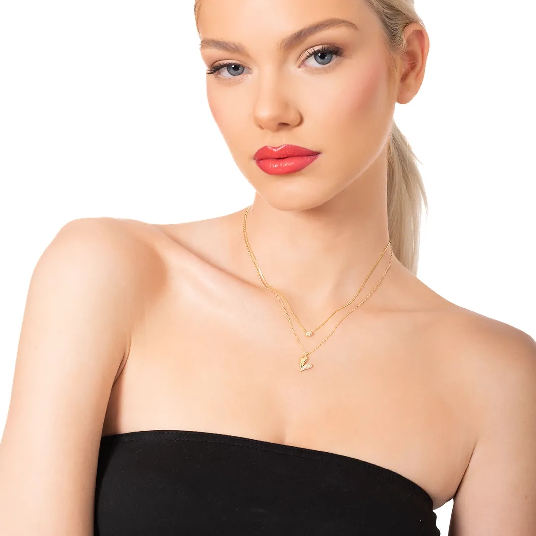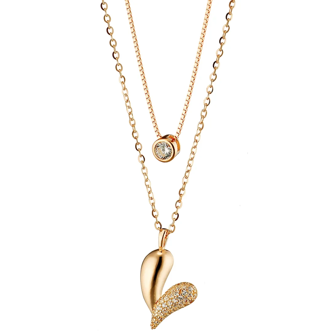 Oxzen γυναικείο κολιέ ασημένιο διπλό με καρδιά και πέτρες ζιργκόν