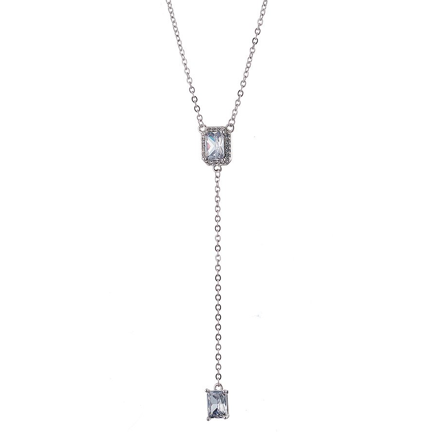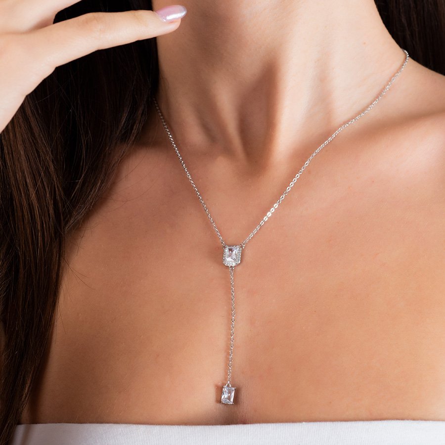 Oxzen γυναικείο κολιέ ασημένιο γραβάτα με ζιργκόν