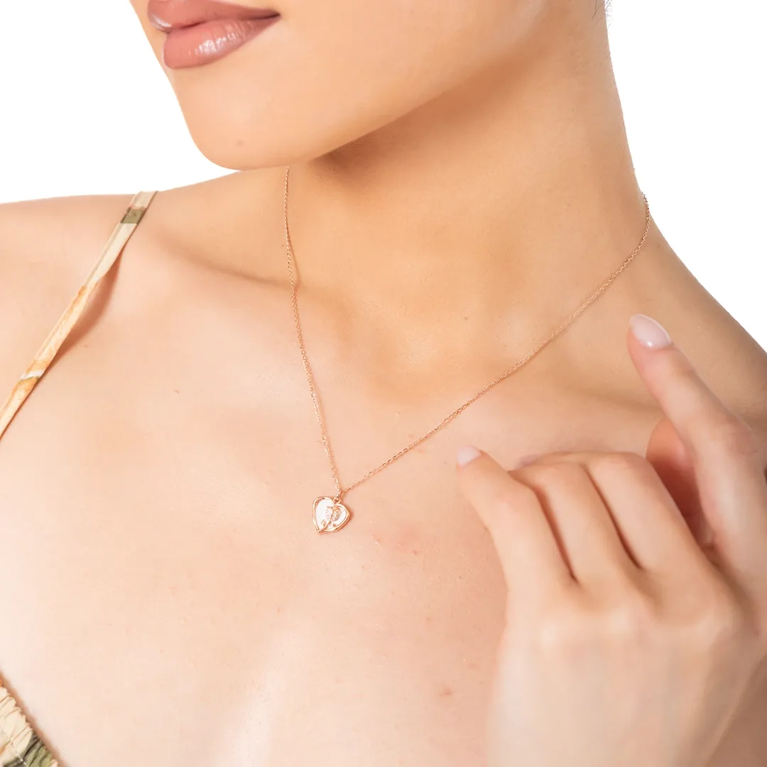 Oxzen γυναικείο κολιέ ασημένιο καρδιά με φίλντισι και τριαντάφυλλο
