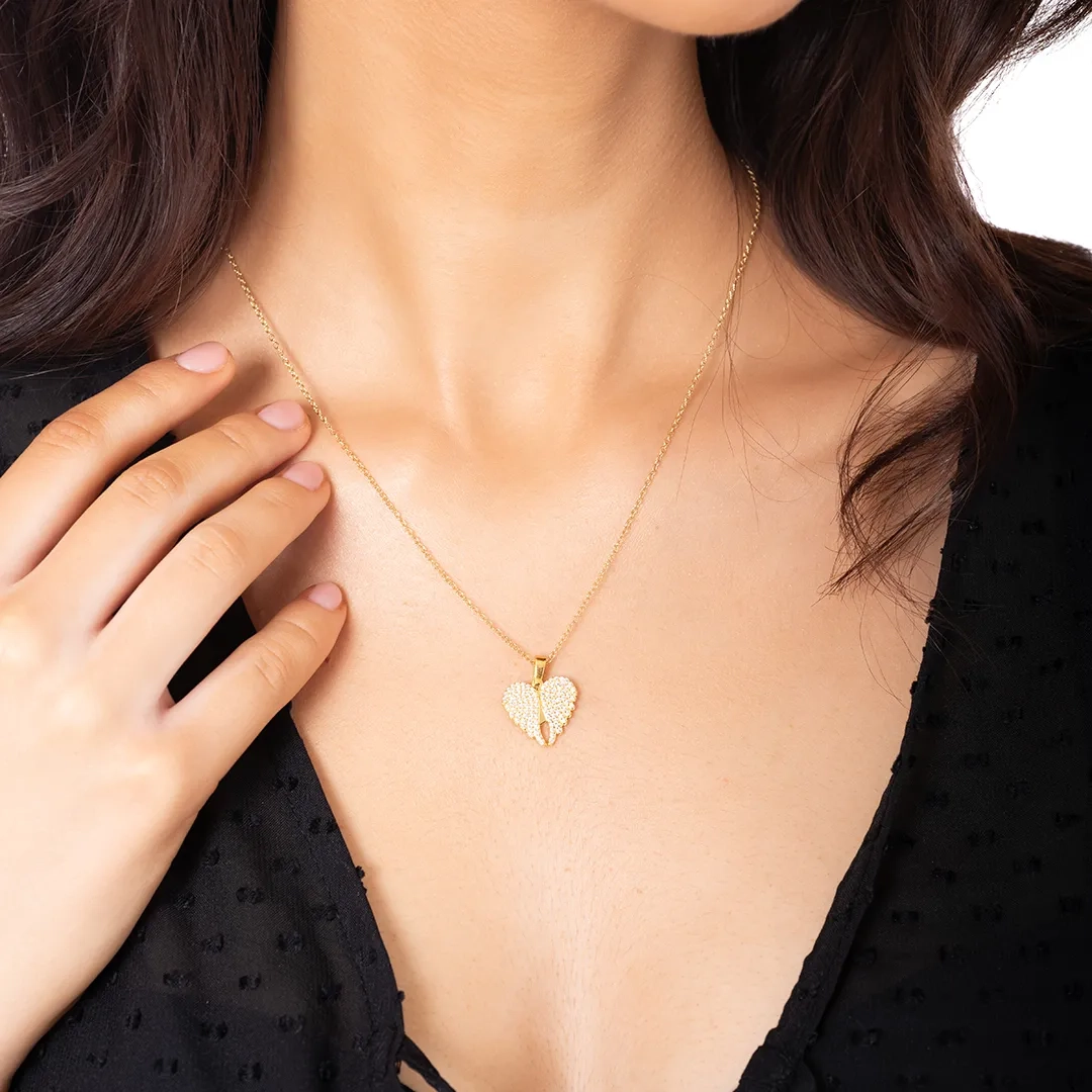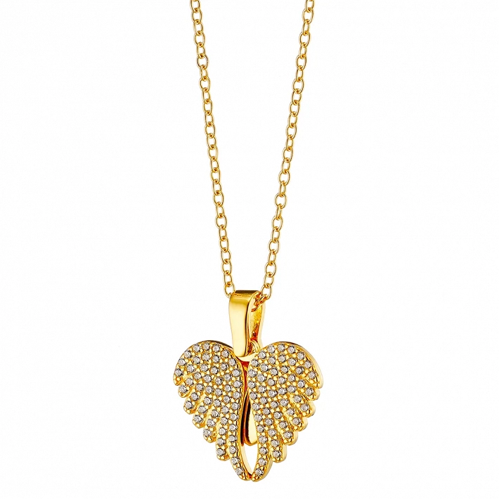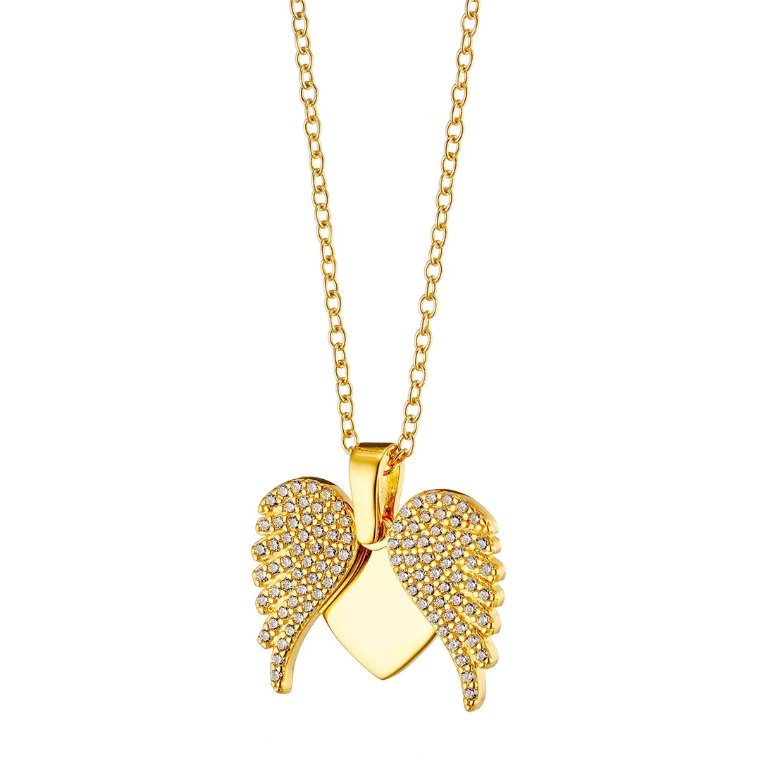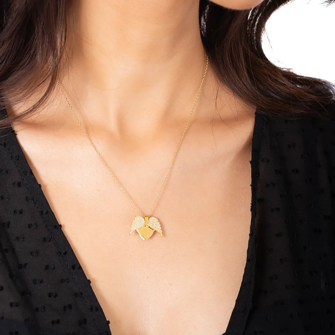 Oxzen γυναικείο κολιέ ασημένιο καρδούλα με φτερά που ανοίγουν