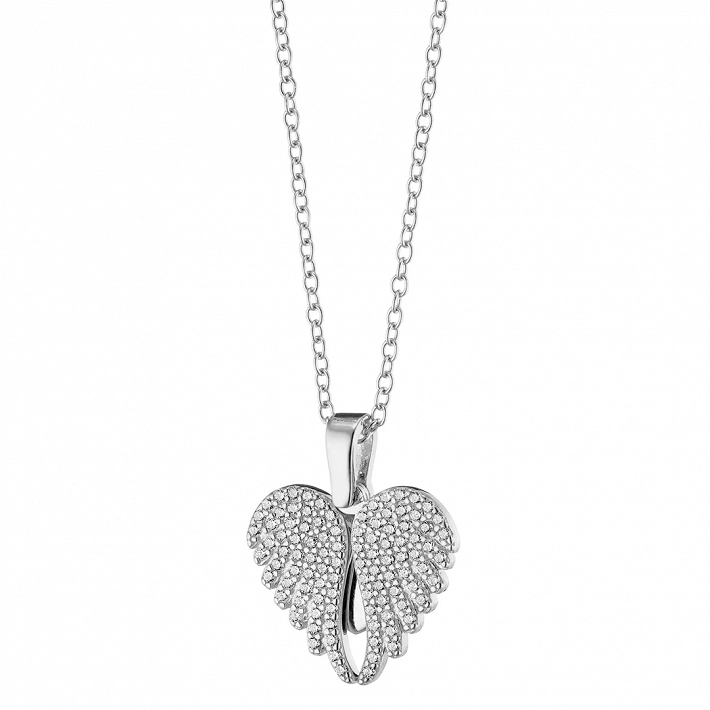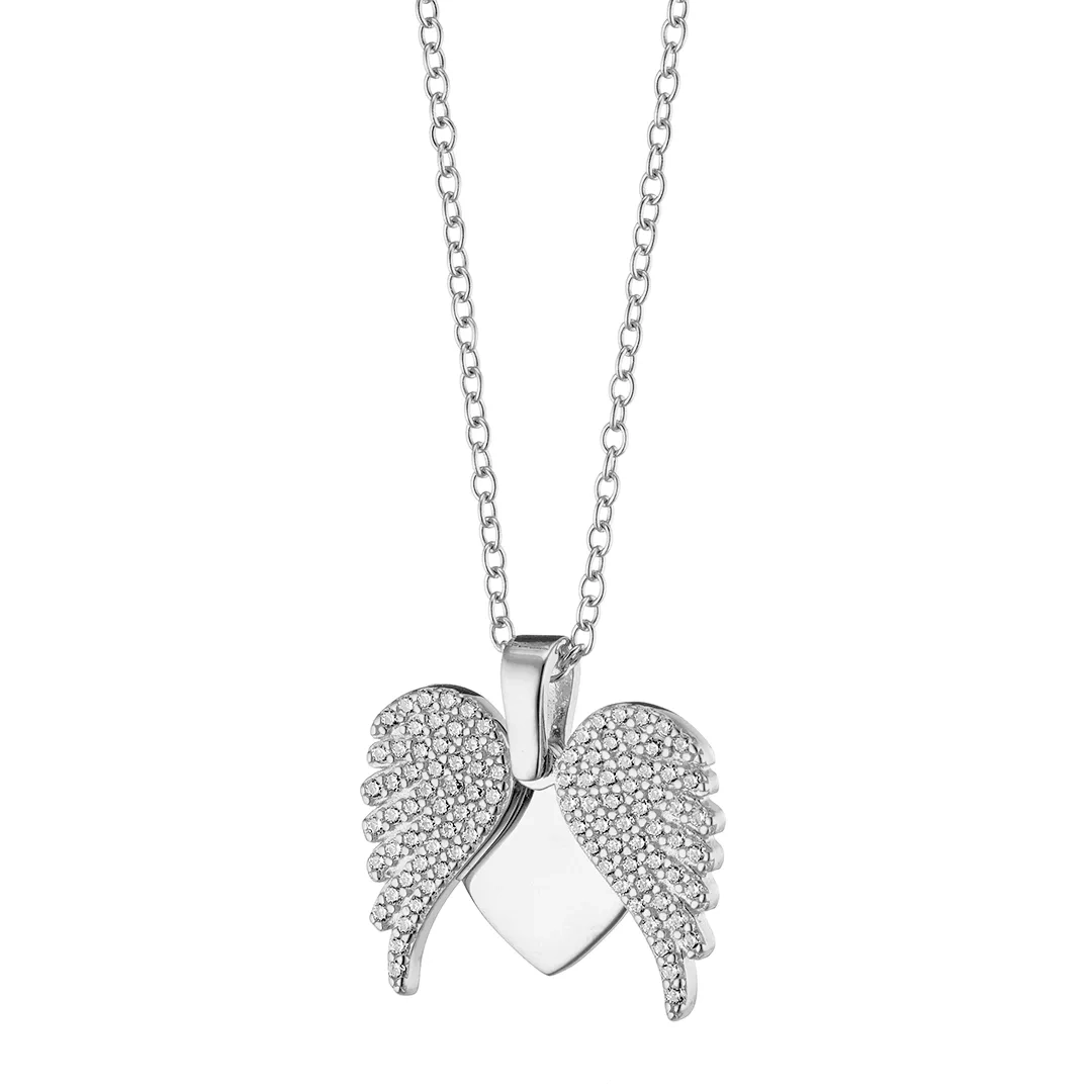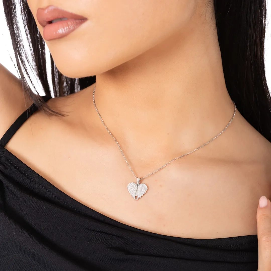 Oxzen γυναικείο κολιέ ασημένιο καρδούλα με φτερά που ανοίγουν