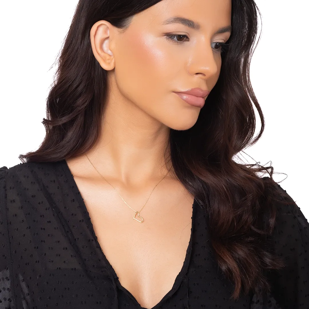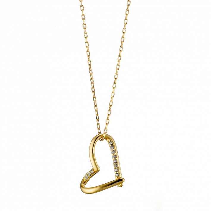 Oxzen γυναικείο κολιέ ασημένιο καρδούλα με λευκά ζιργκόν