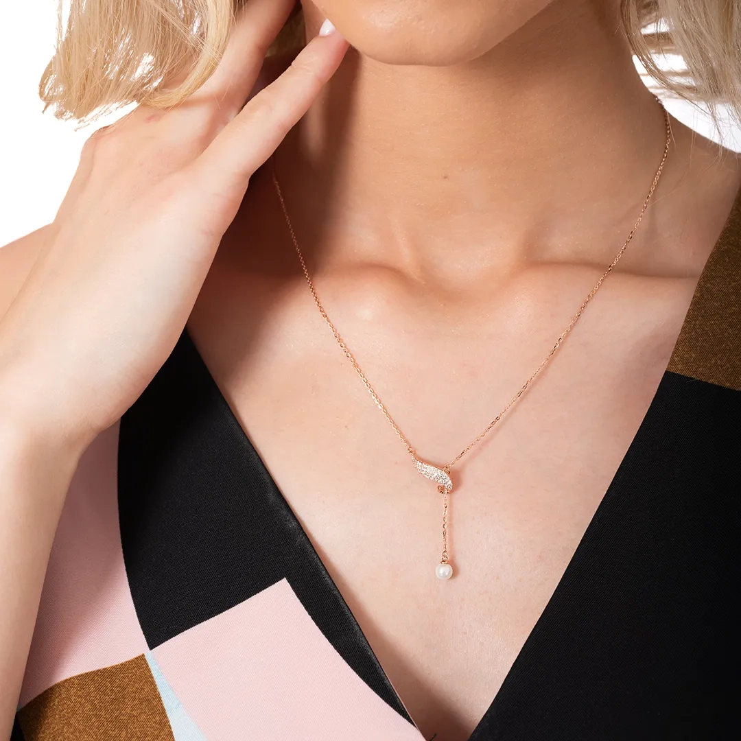 Oxzen γυναικείο κολιέ ασημένιο με πέρλα