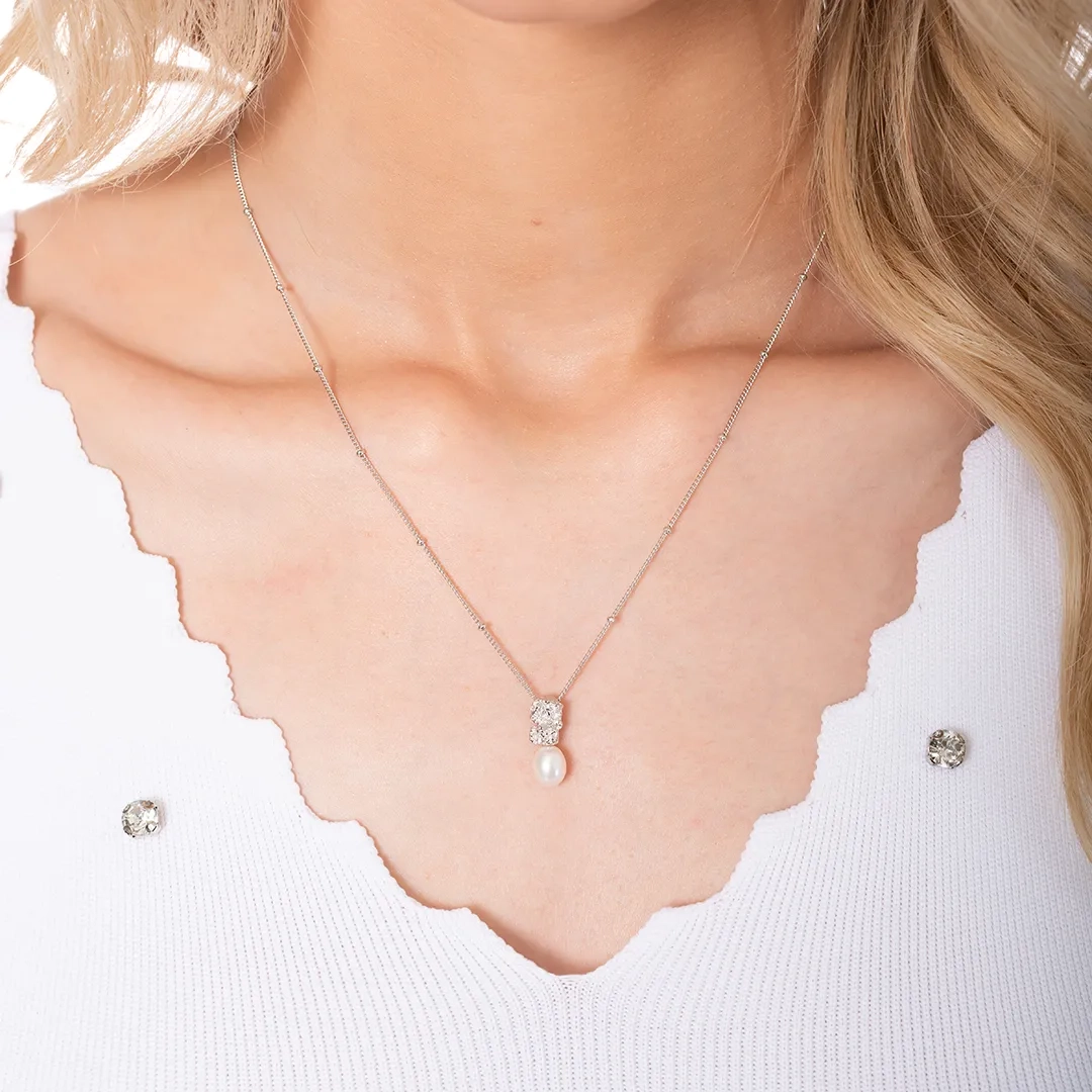 Oxzen γυναικείο κολιέ ασημένιο με πέρλα χειροποίητο