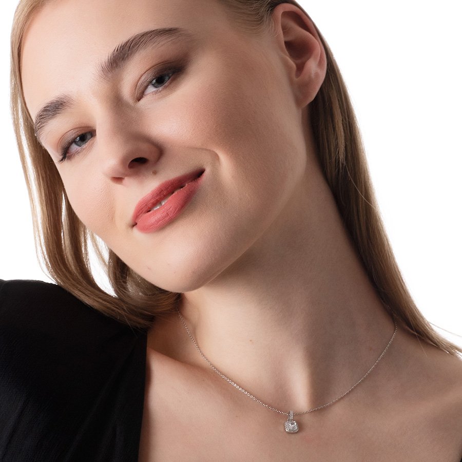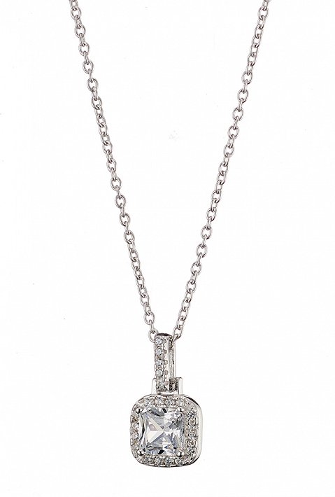 Oxzen γυναικείο κολιέ ασημένιο, τετράγωνο με πέτρα ζιργκόν