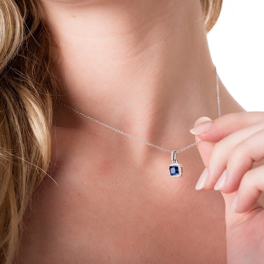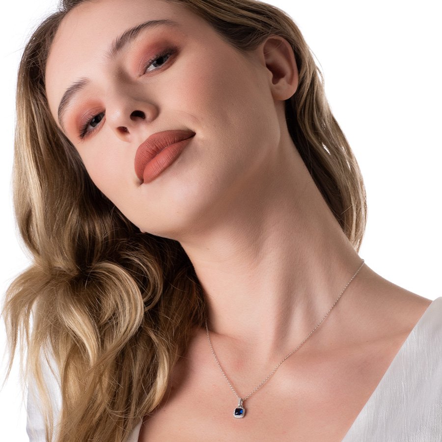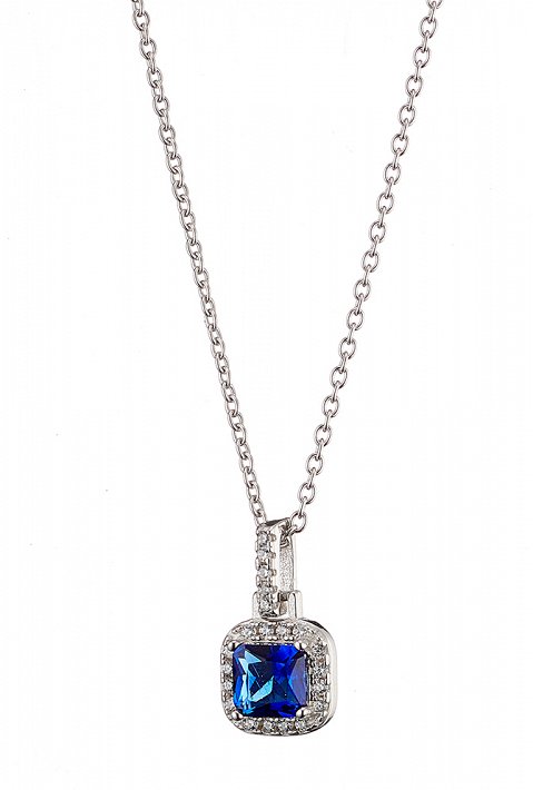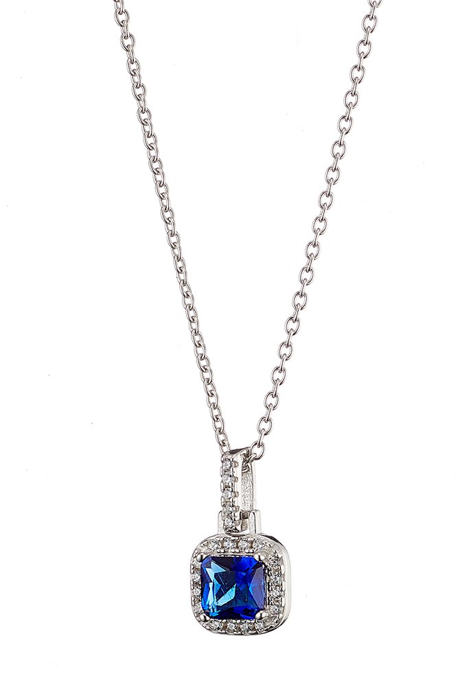 Oxzen γυναικείο κολιέ ασημένιο, τετράγωνο με πέτρα ζιργκόν