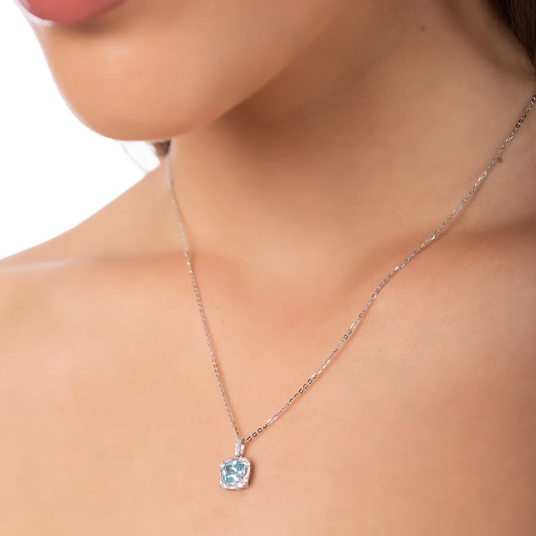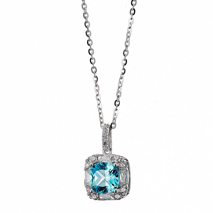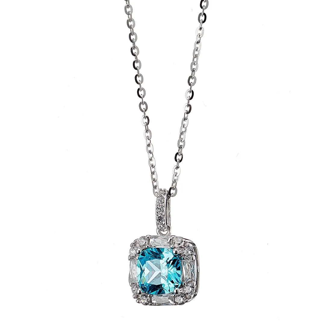Γυναικείο κολιέ τετράγωνο μονόπετρο με πέτρα aqua marina
