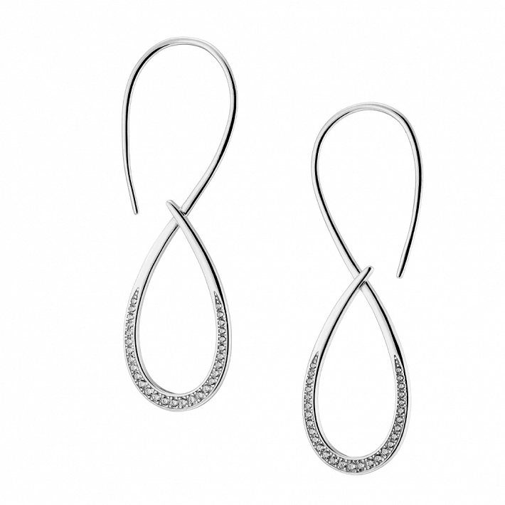 Oxzen γυναικείο σκουλαρίκι ασημένιο μακρύ με σχήμα 8 και λευκά ζιργκόν