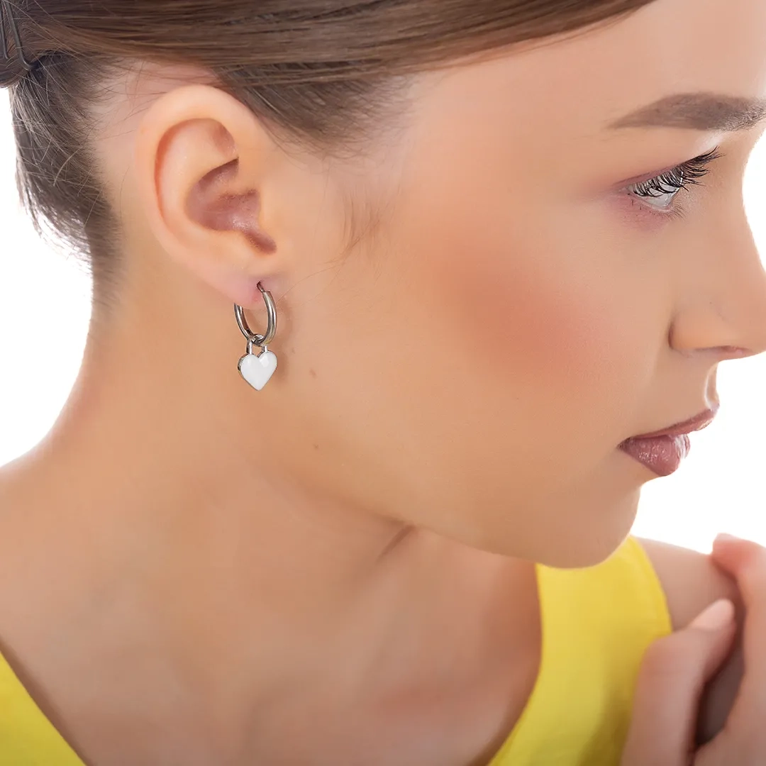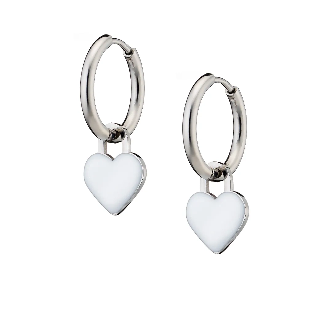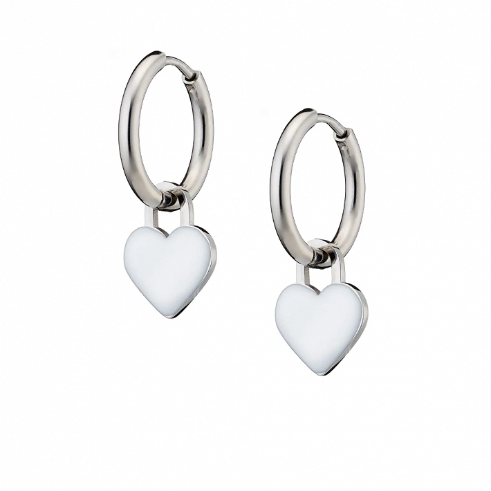 Oxzen γυναικείο σκουλαρίκι ατσάλινο με κρεμαστή λευκή καρδούλα