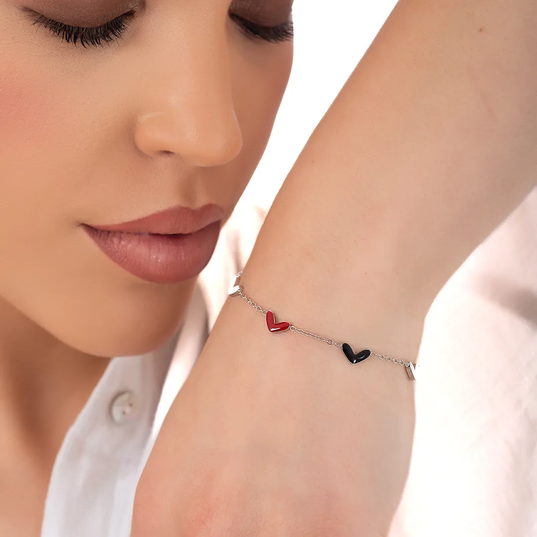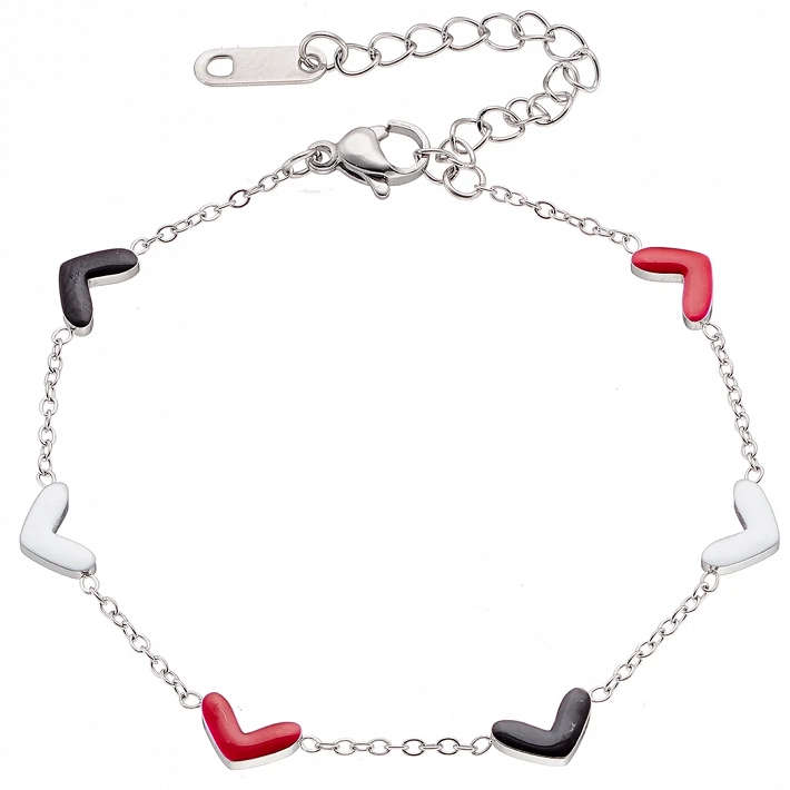 Oxzen γυναικείο βραχιόλι από ανοξείδωτο ατσάλι με πολύχρωμες καρδούλες