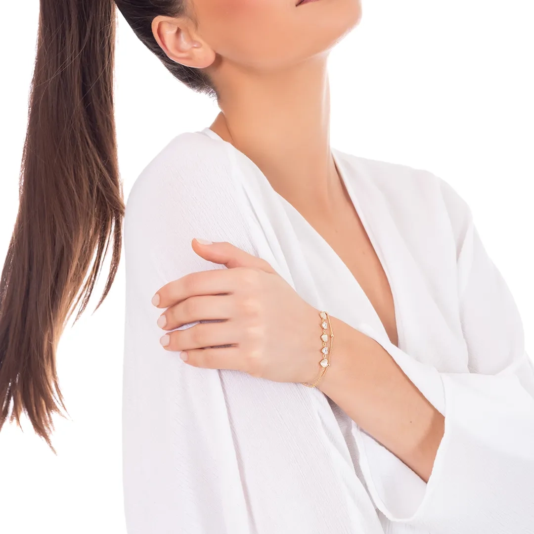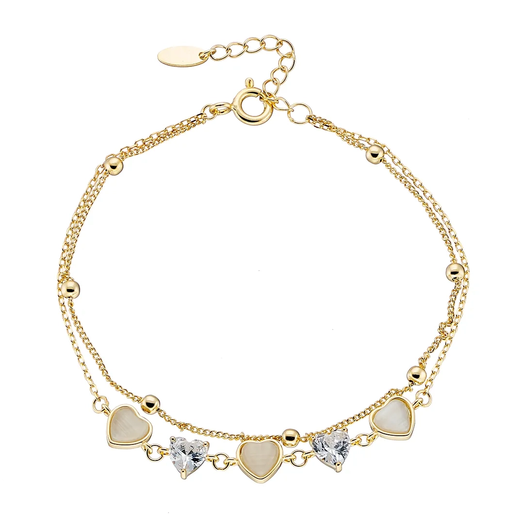 Oxzen γυναικείο βραχιόλι ασημένιο διπλό με καρδιές φίλντισι