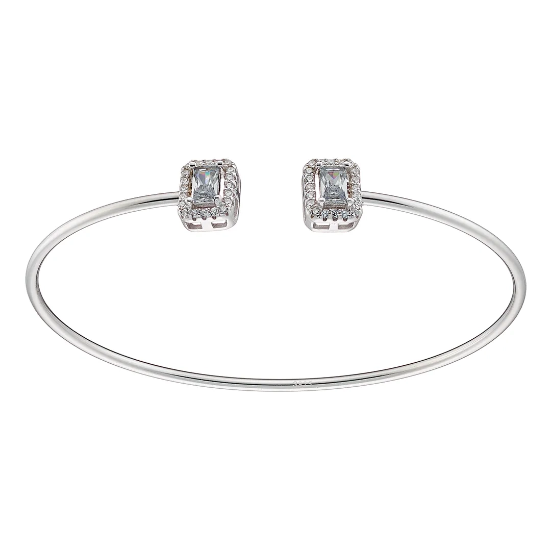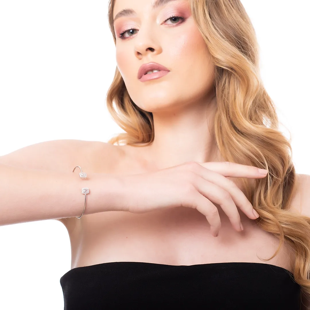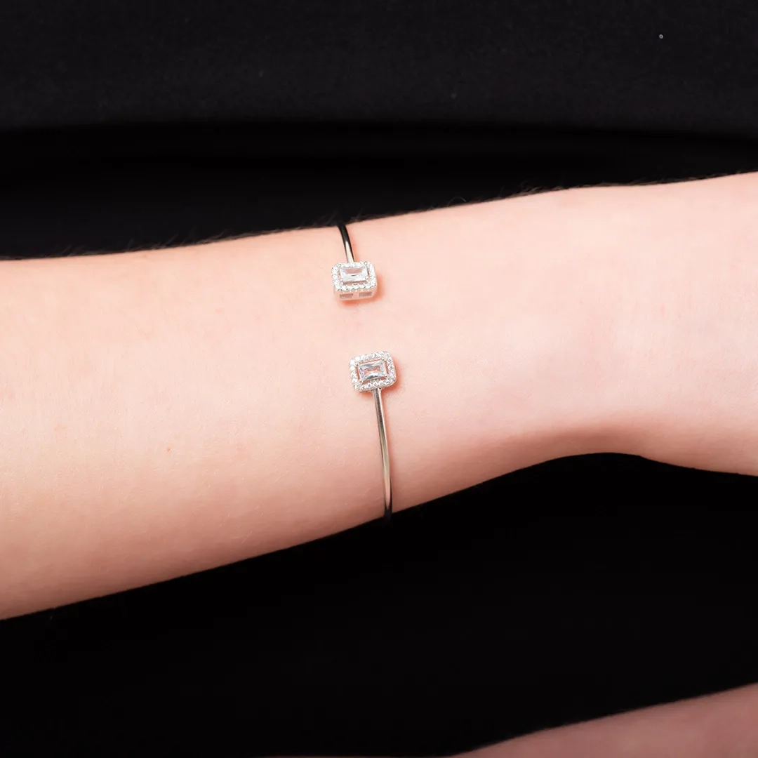 Oxzen γυναικείο βραχιόλι ασημένιο εύκαμπτο με δύο τετράγωνα ζιργκόν