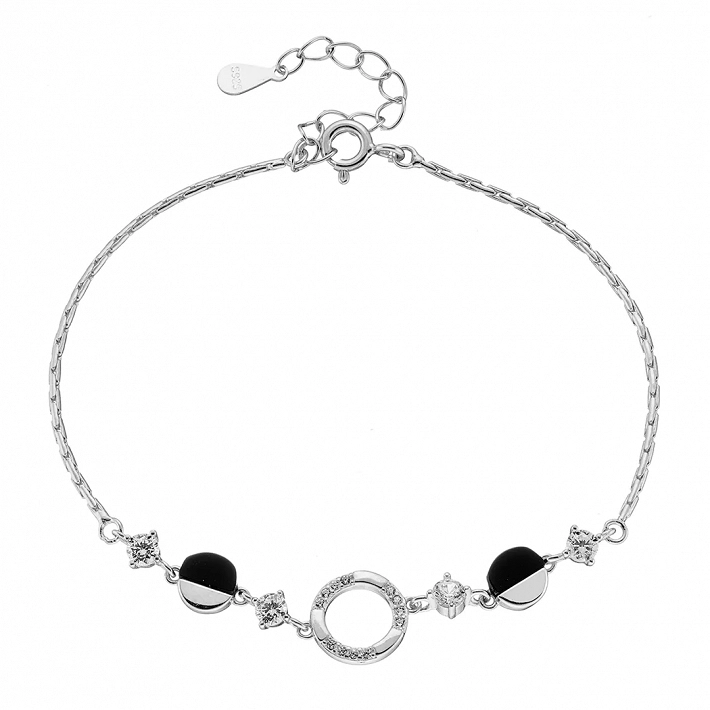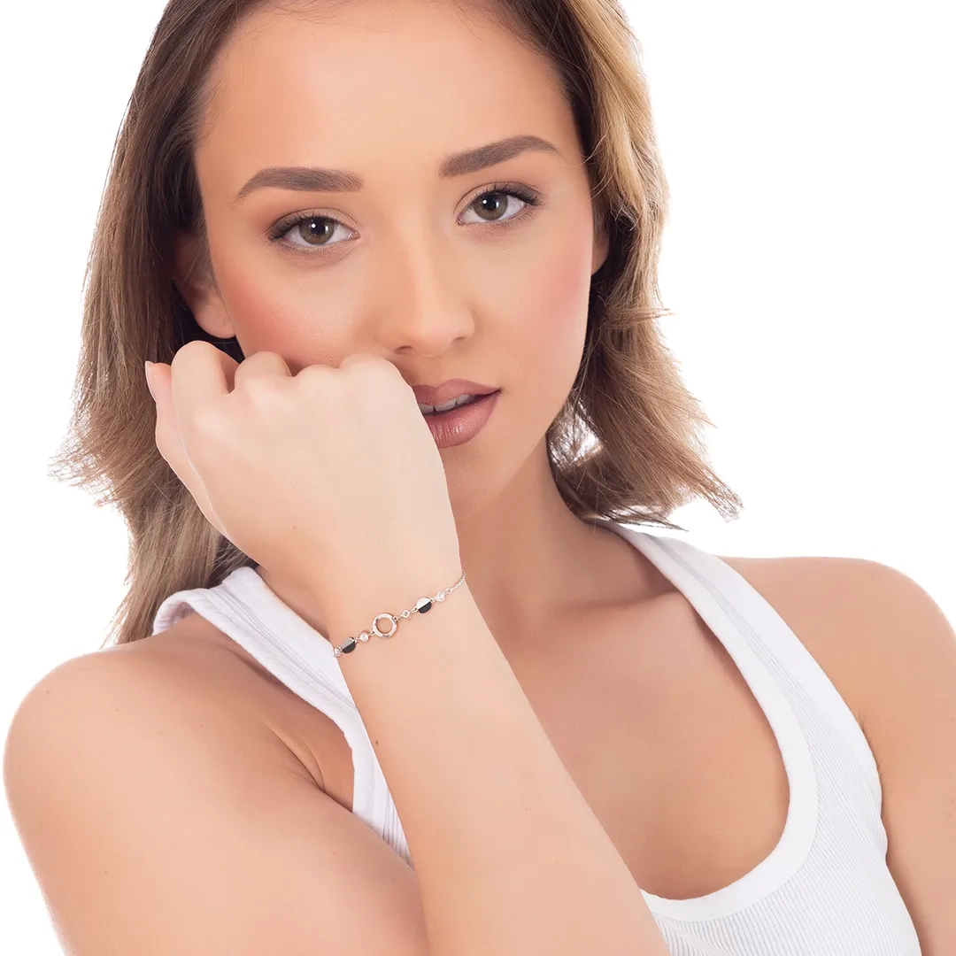 Oxzen γυναικείο βραχιόλι ασημένιο με κύκλους και λευκά ζιργκόν