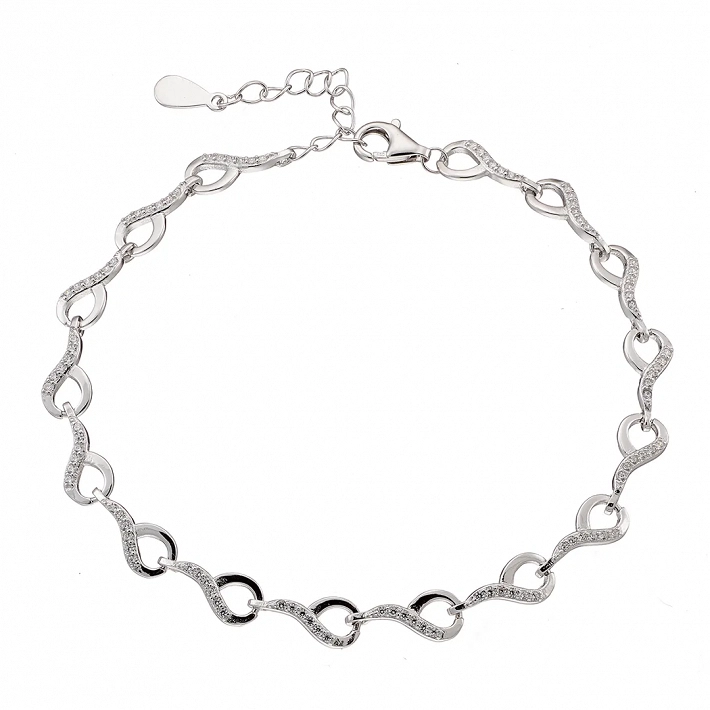 Oxzen γυναικείο βραχιόλι ασημένιο με λευκά ζιργκόν