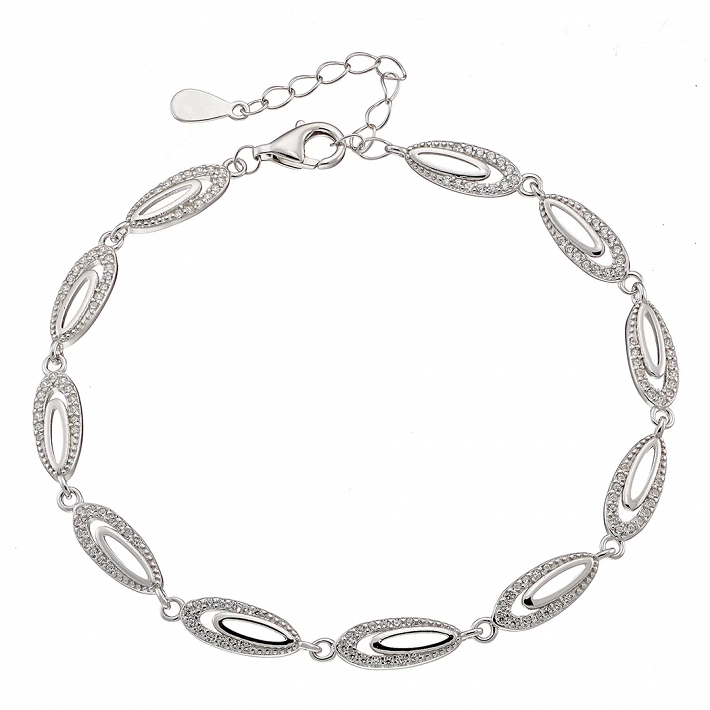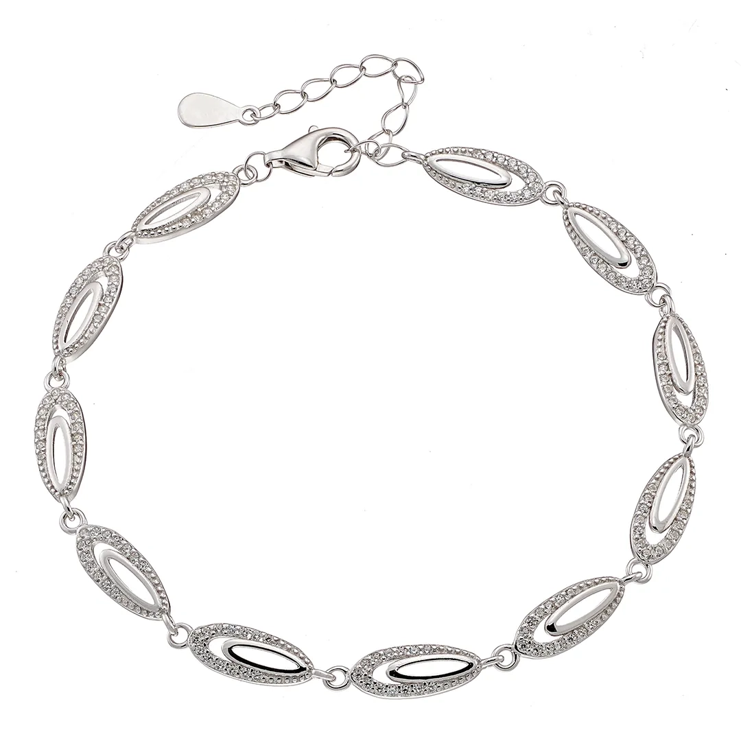 Oxzen γυναικείο βραχιόλι ασημένιο με λευκά ζιργκόν