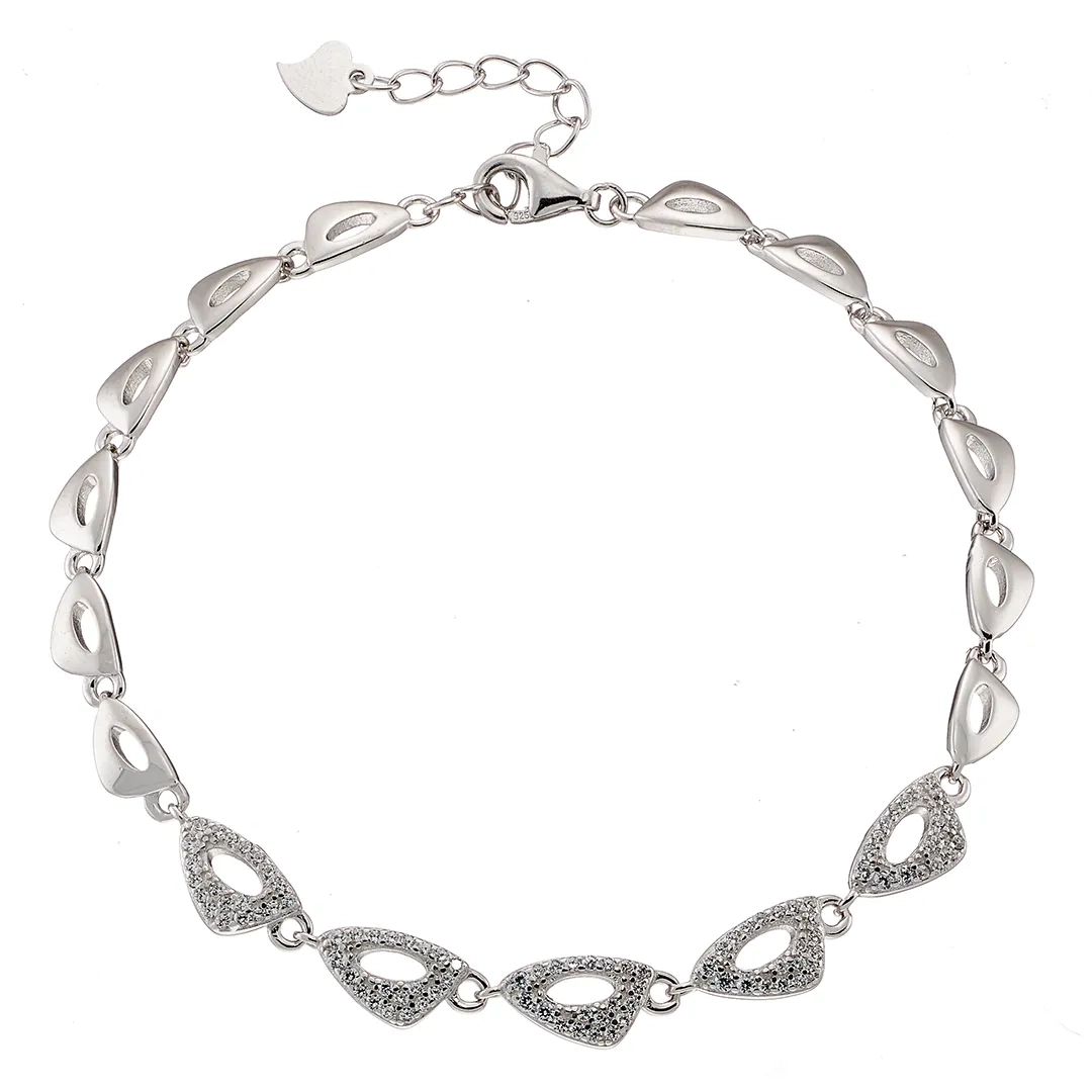 Oxzen γυναικείο βραχιόλι ασημένιο με λευκά ζιργκόν
