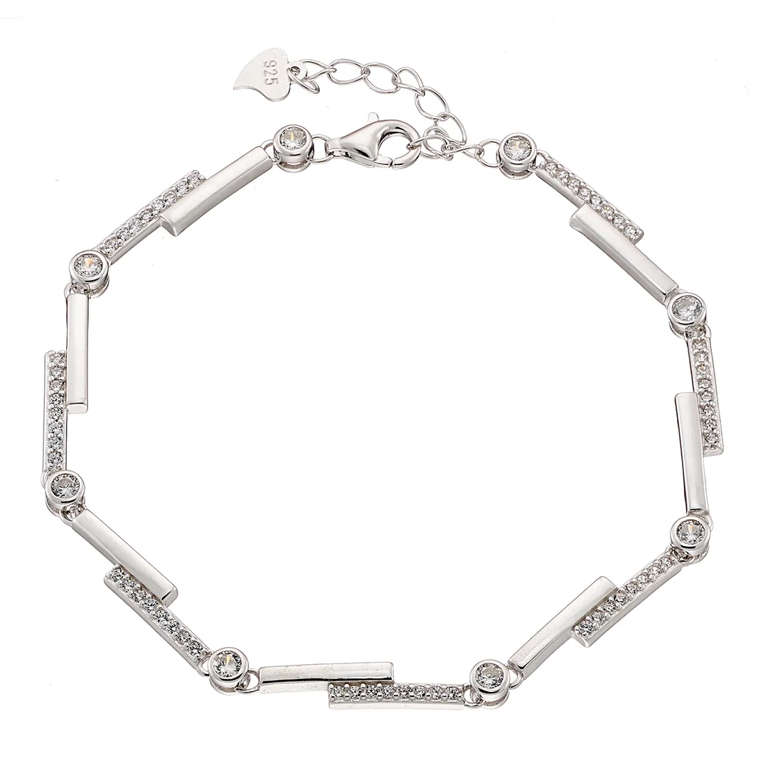 Oxzen γυναικείο βραχιόλι ασημένιο με λευκά ζιργκόν