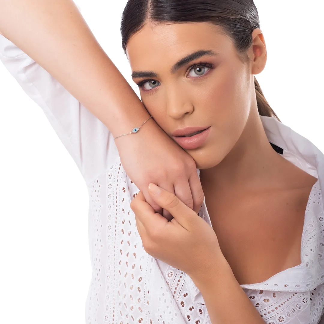 Oxzen γυναικείο βραχιόλι ασημένιο με ματάκι