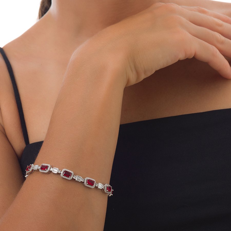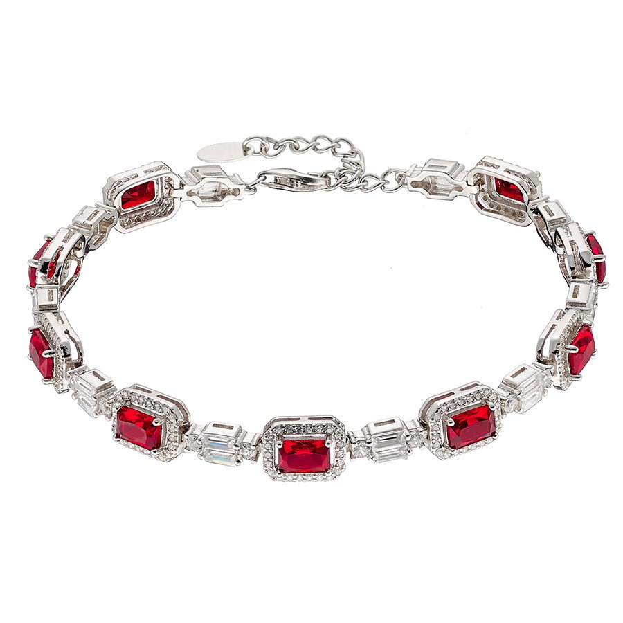 Oxzen γυναικείο βραχιόλι ασημένιο ριβιέρα με καρέ πέτρες ζιργκόν